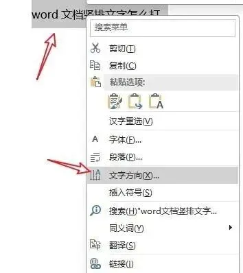 1、在word文档中选择需要调整的文字,在单击鼠标右键,进入菜单后选择【文字方向】。