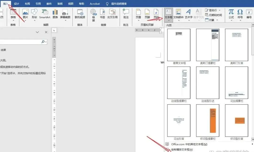 1、在文档上方功能区插入下的文本框中选择【绘制竖排文本框】。