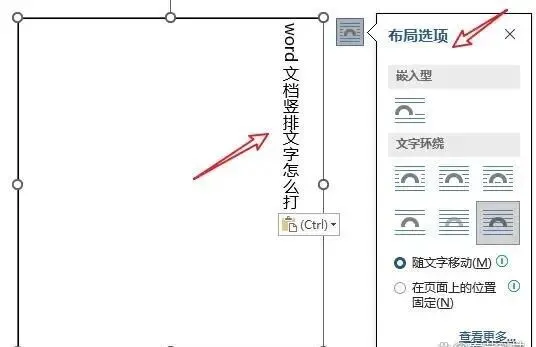 2、在文档中选择位置插入文本框后,输入【文字内容】自动按照竖排排列,可通过布局选项调整文本框的位置。