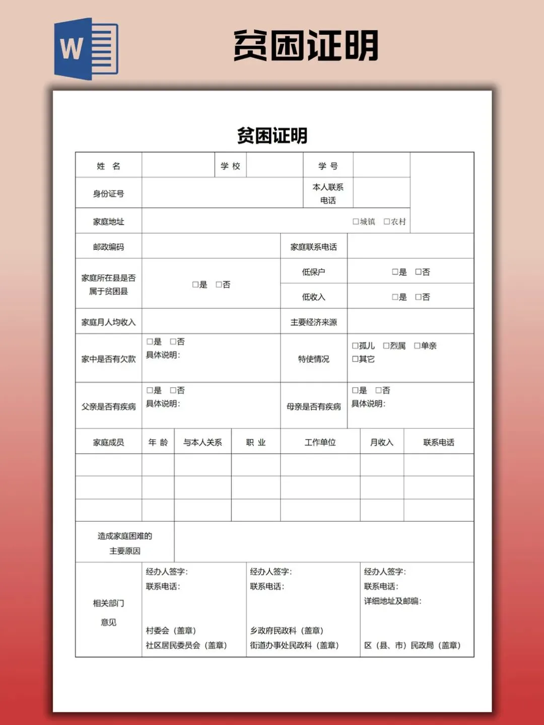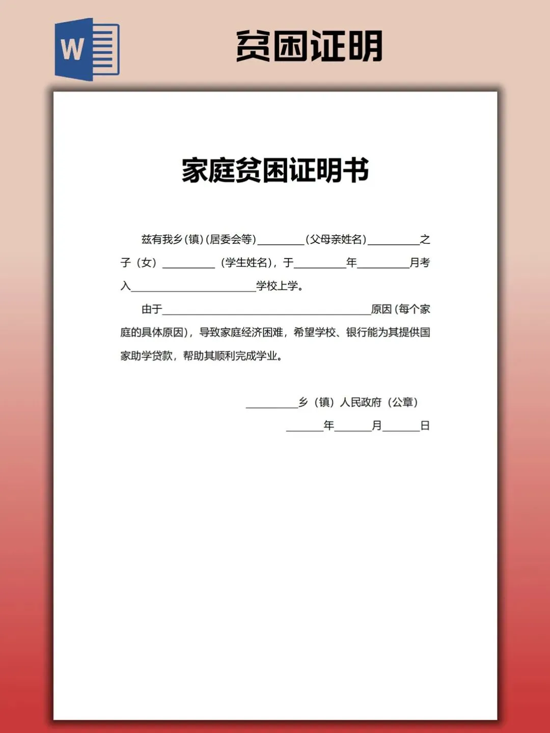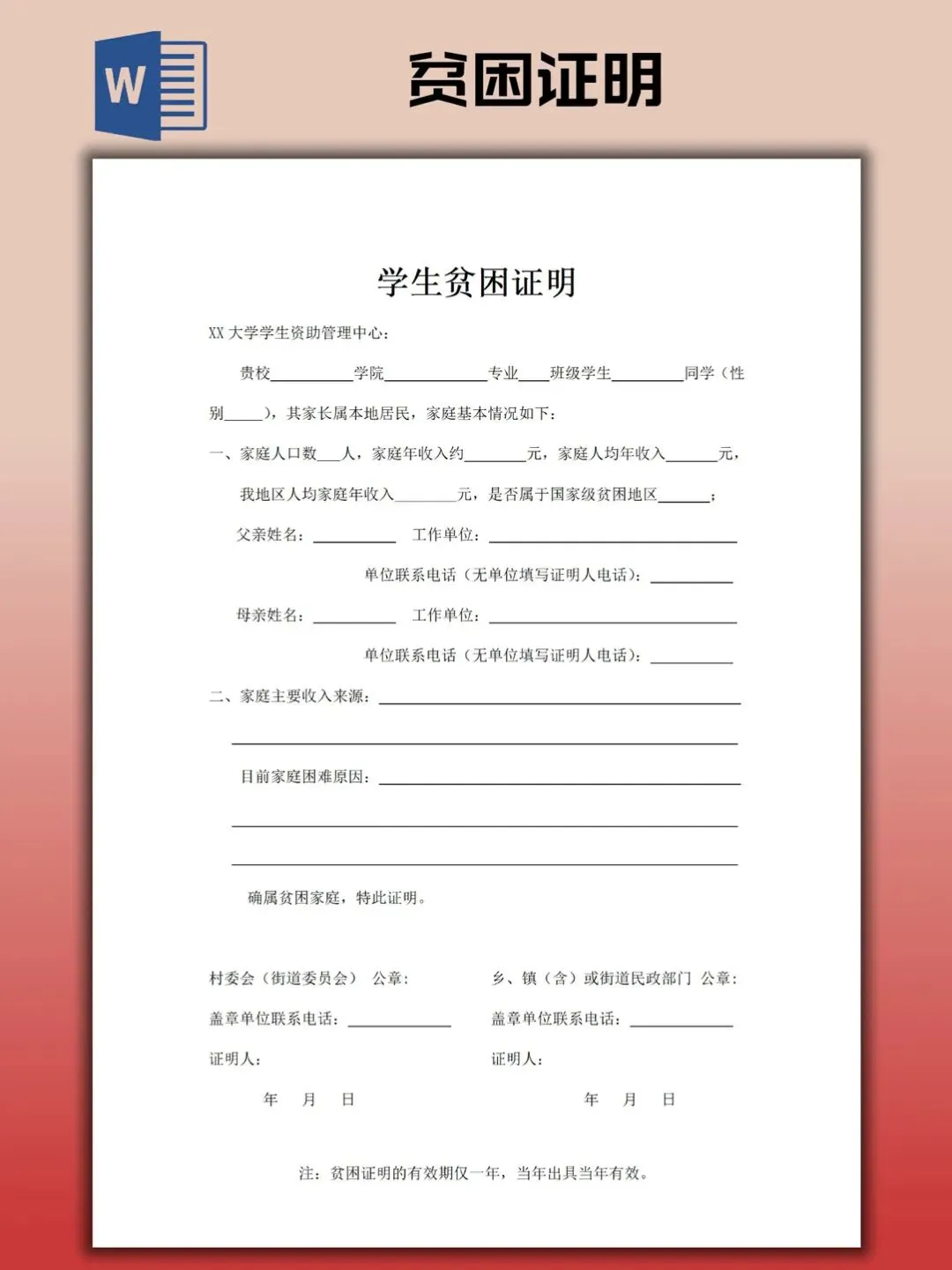 本文内容分享贫困证明模板