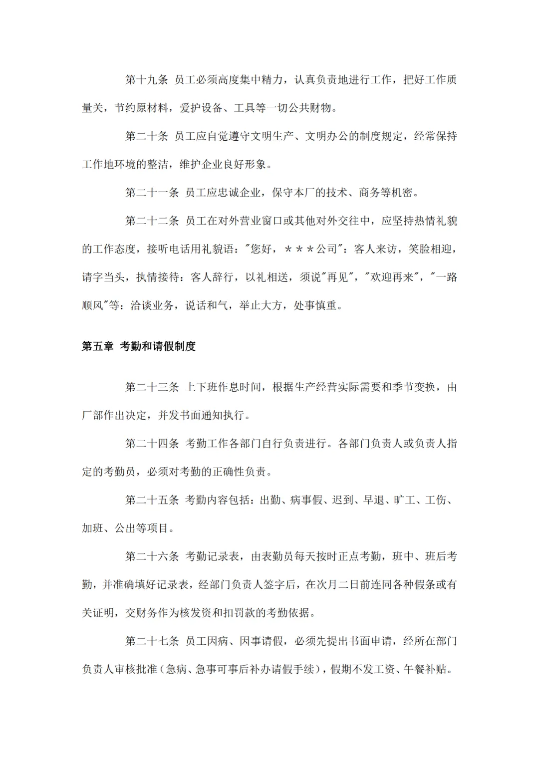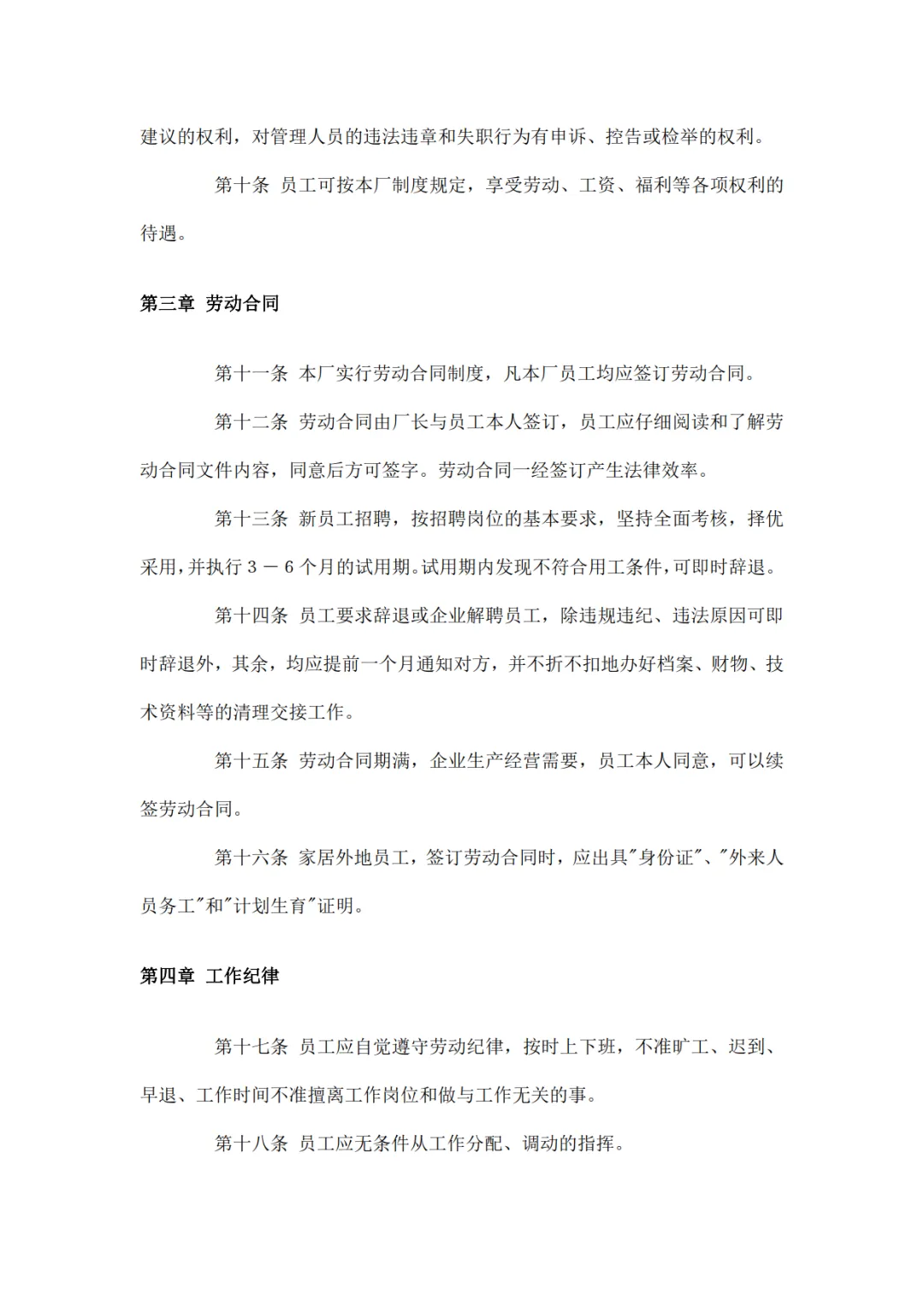 工厂员工手册范本和规章制度,WORD文档电子版,可免费下载打印