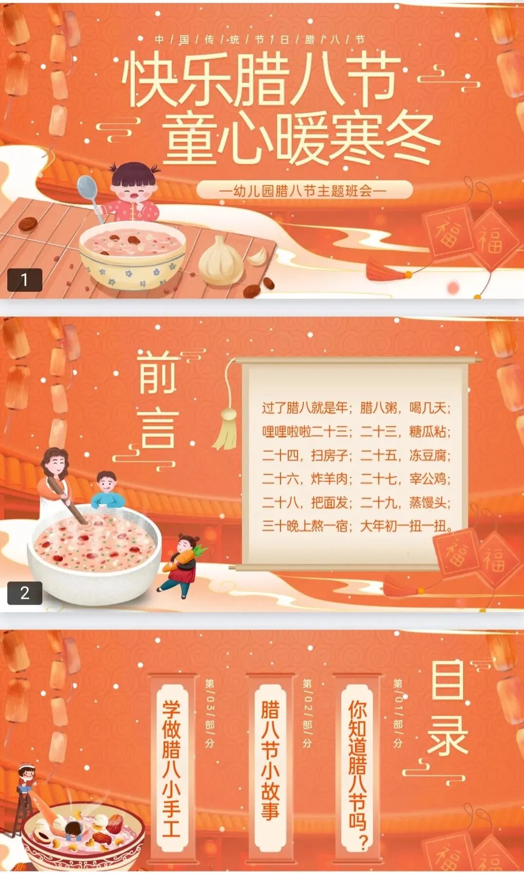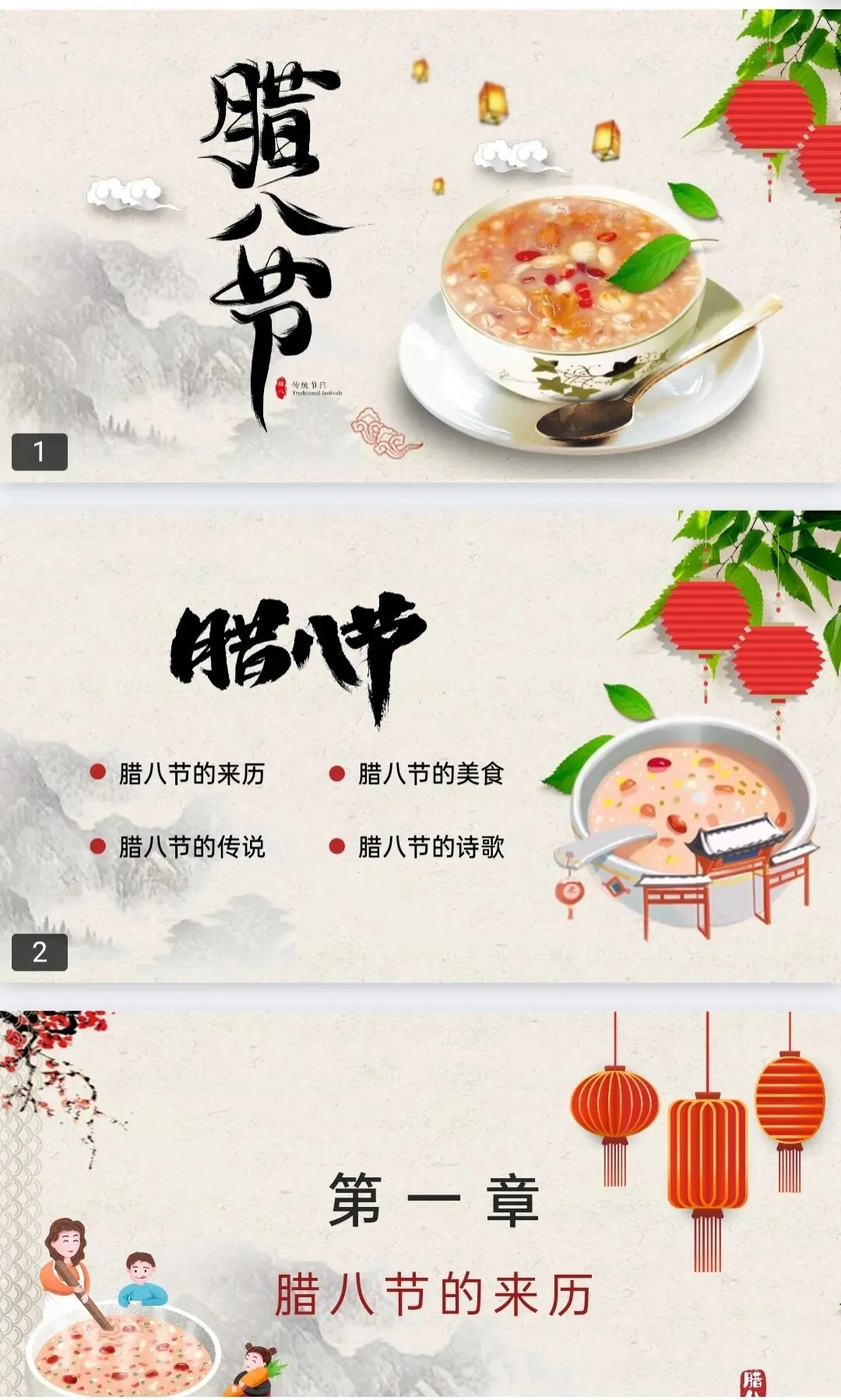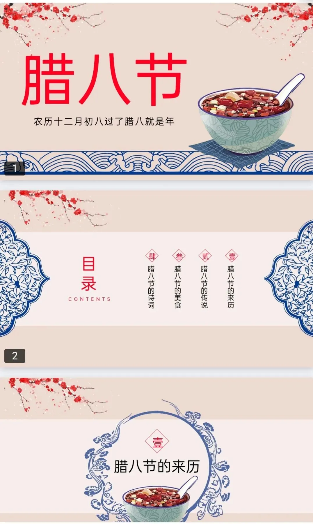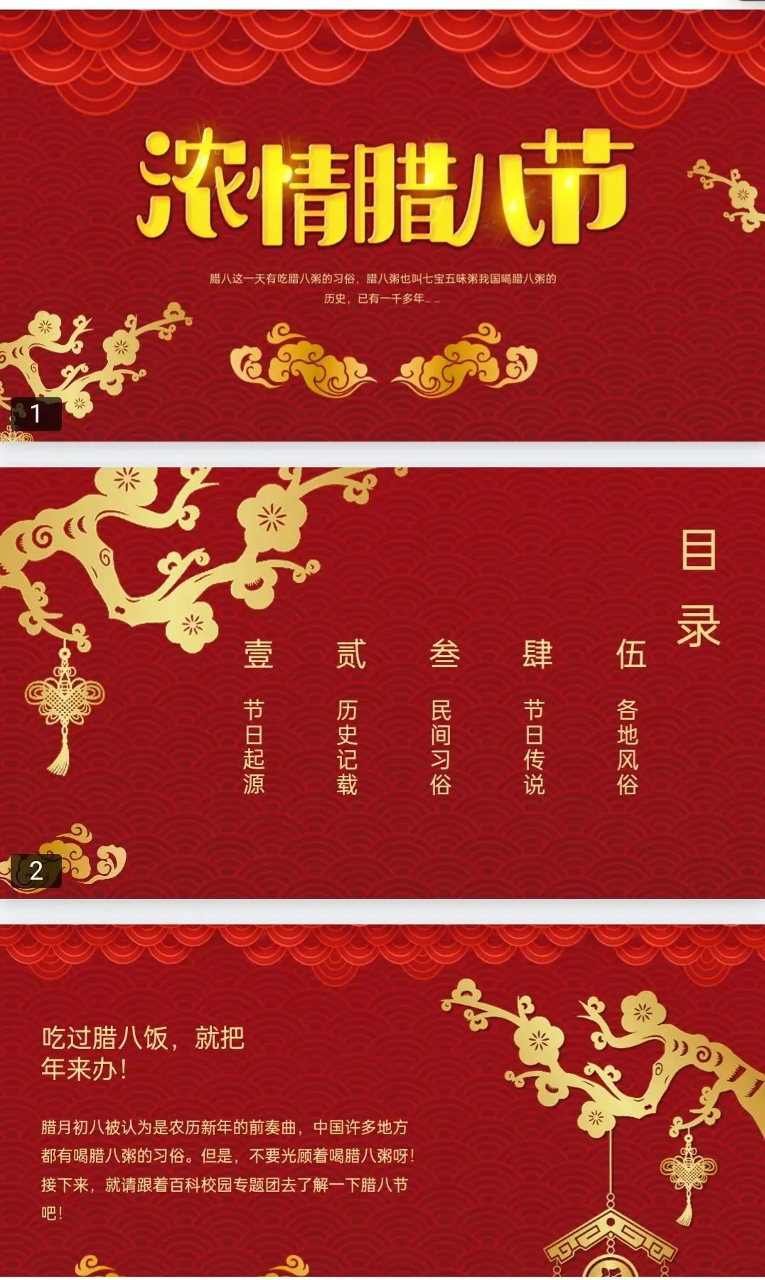 1.本文内容分享:《马年腊八节PPT模板》