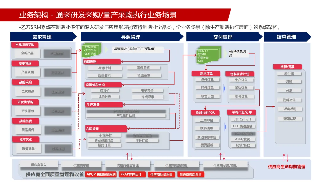 采购执行阶段需强化订单、交付与物流的实时可视,对账付款则依托自动化流程提升效率与准确性。供应商管理并非孤立环节,而是嵌入各节点,为动态评估与协同奠定基础。整个规划的核心在于打破部门与系统壁垒,使信息流、物流与资金流同步贯通,推动供应链由传统操作向协同生态演进。