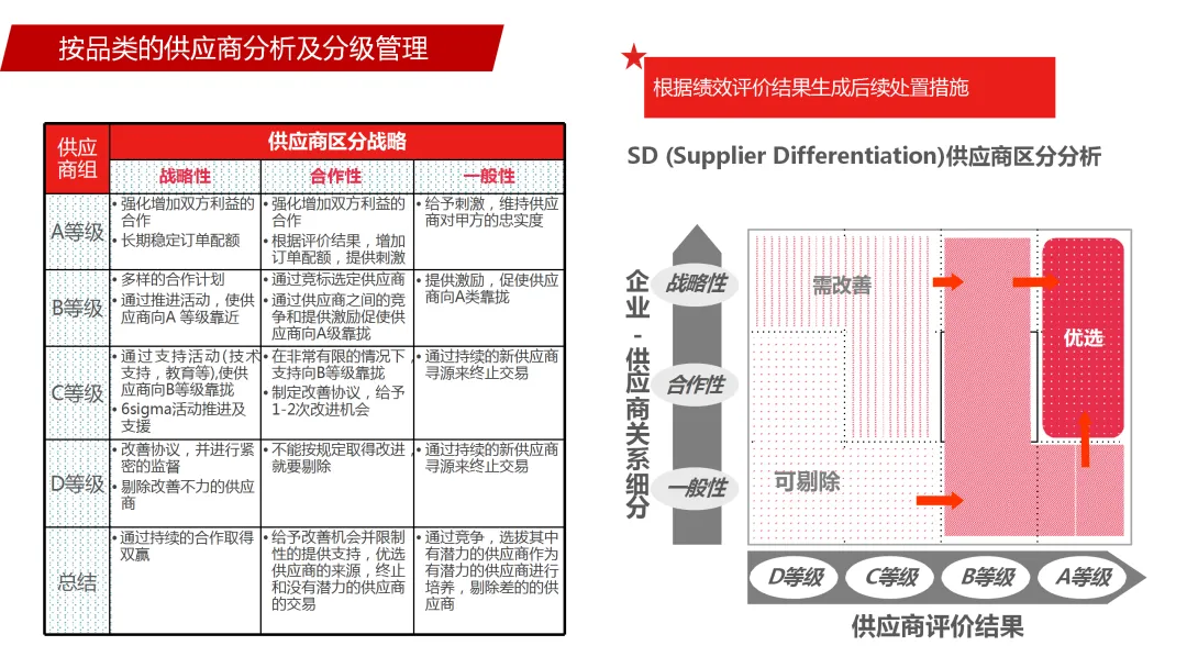 供应商生命周期管理是架构的关键链路:从准入阶段的资质审核、风险评估,到合作中的绩效跟踪、能力培育,直至发展阶段的激励优化或淘汰更替,均需通过量化指标与定期评审实现动态管理。这不仅提升了供应商群体的整体质量,更将外部资源转化为持续竞争力的来源,使供应链具备更强的适应性与增值能力。