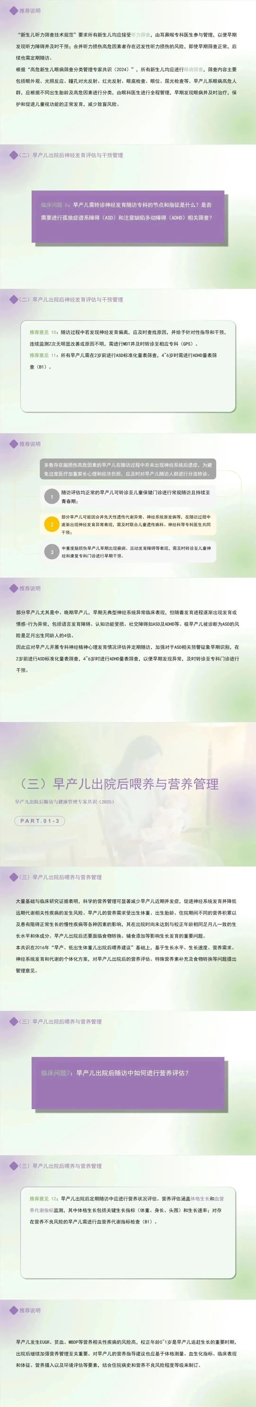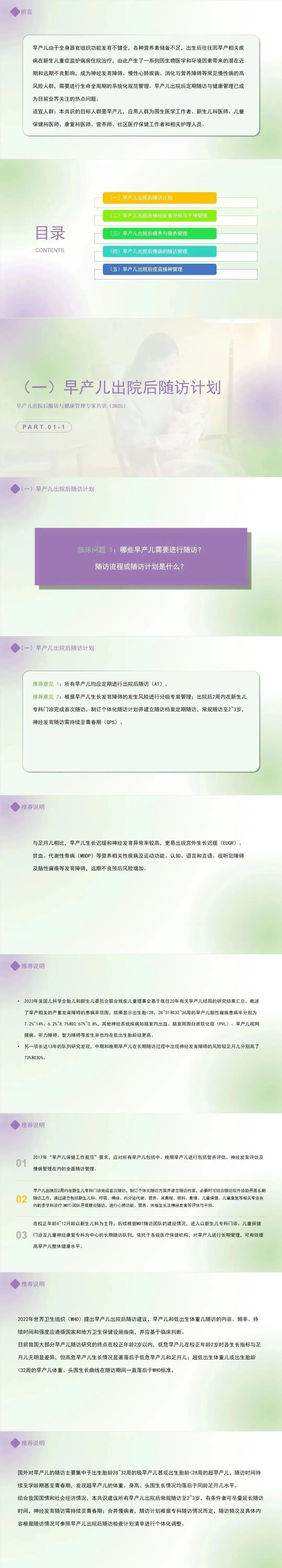 推荐意见 1:所有早产儿均应定期进行出院后随访。