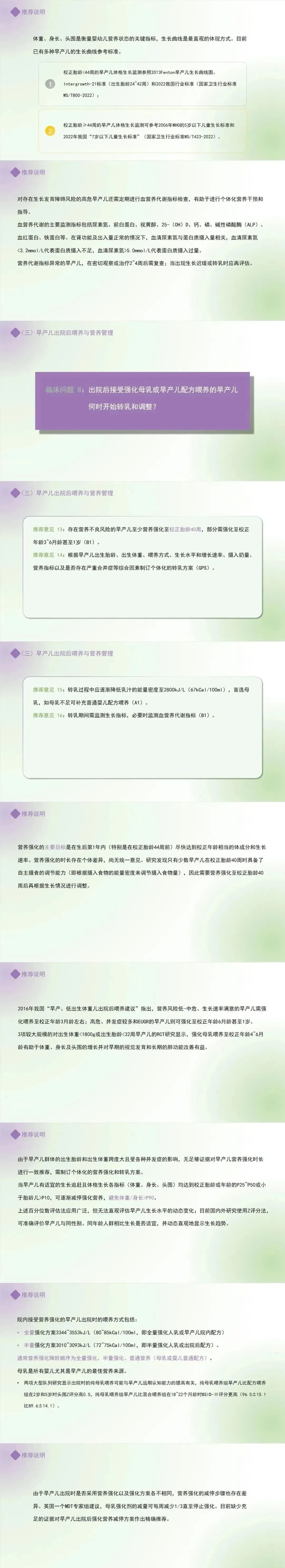 推荐意见 16:转乳期间需监测生长指标,必要时监测血营养代谢指标。