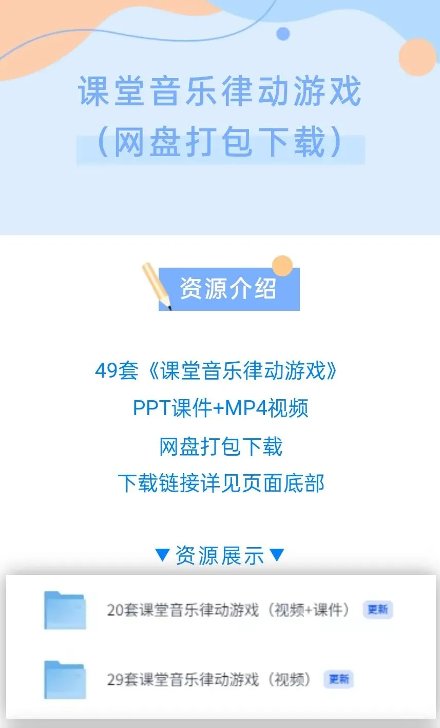 >49套《课堂音乐律动游戏》PPT课件+MP4视频(免费分享)课前热身节奏训练,小学初中老师必备