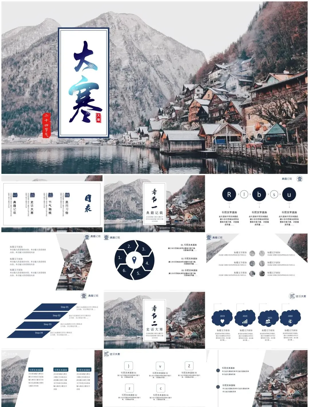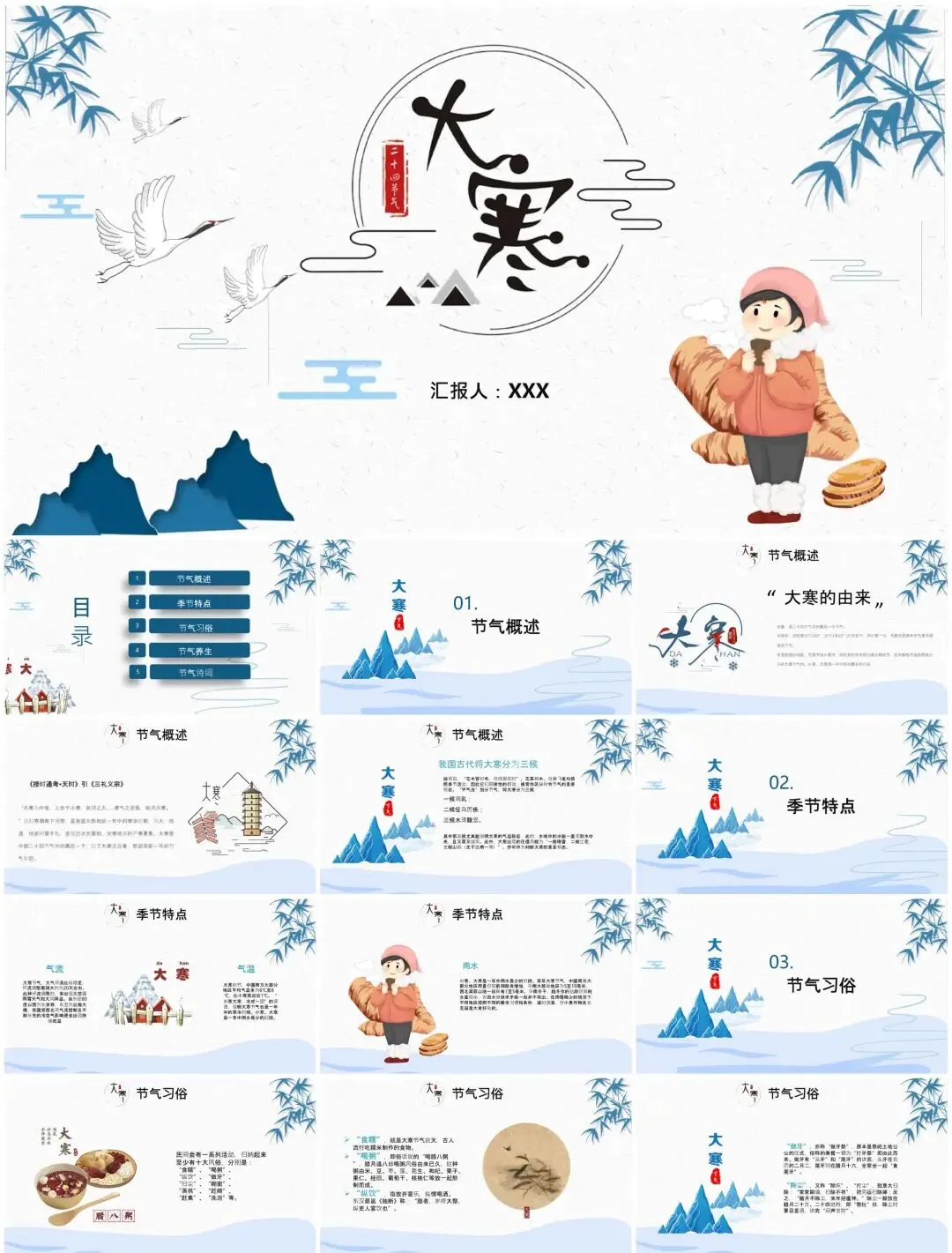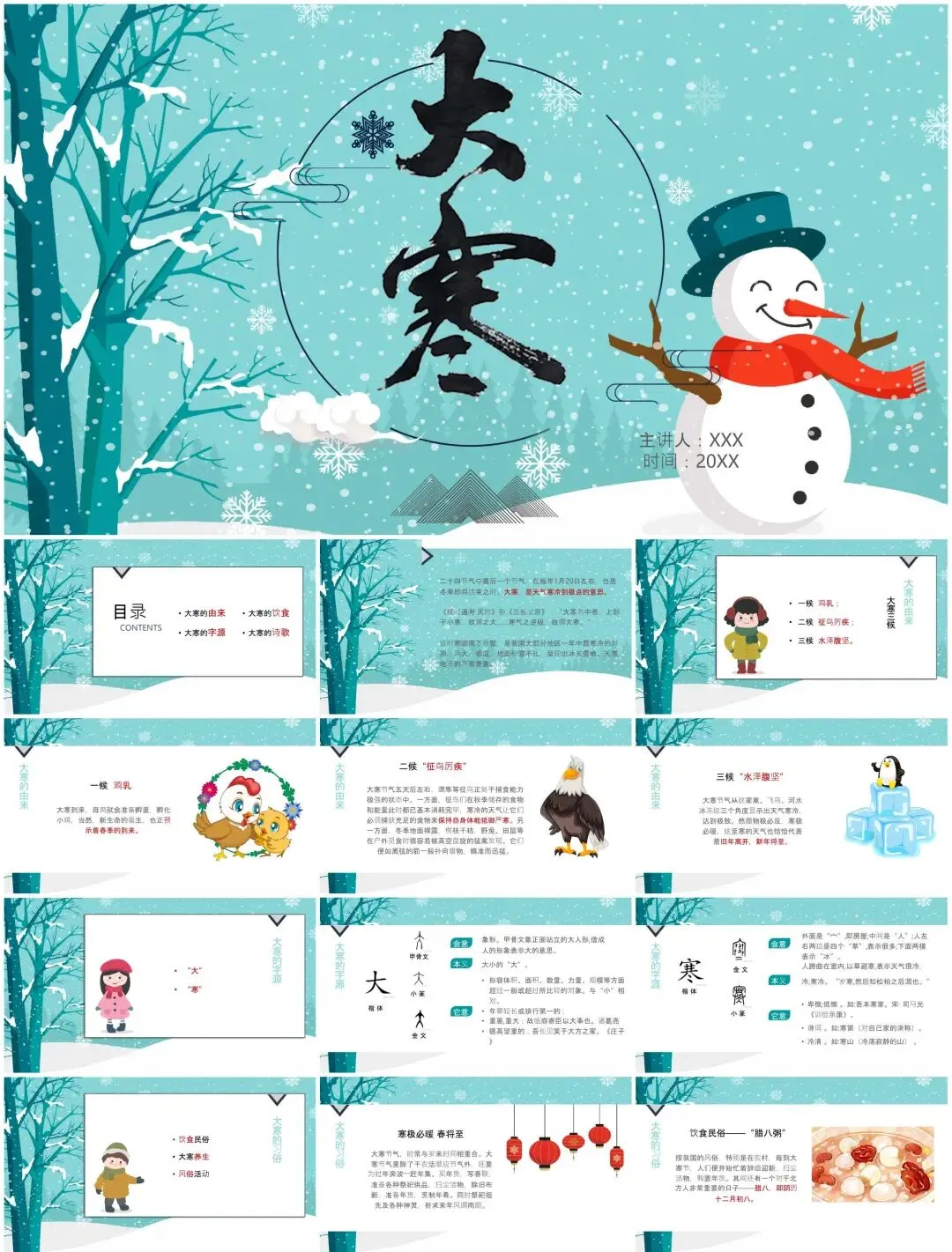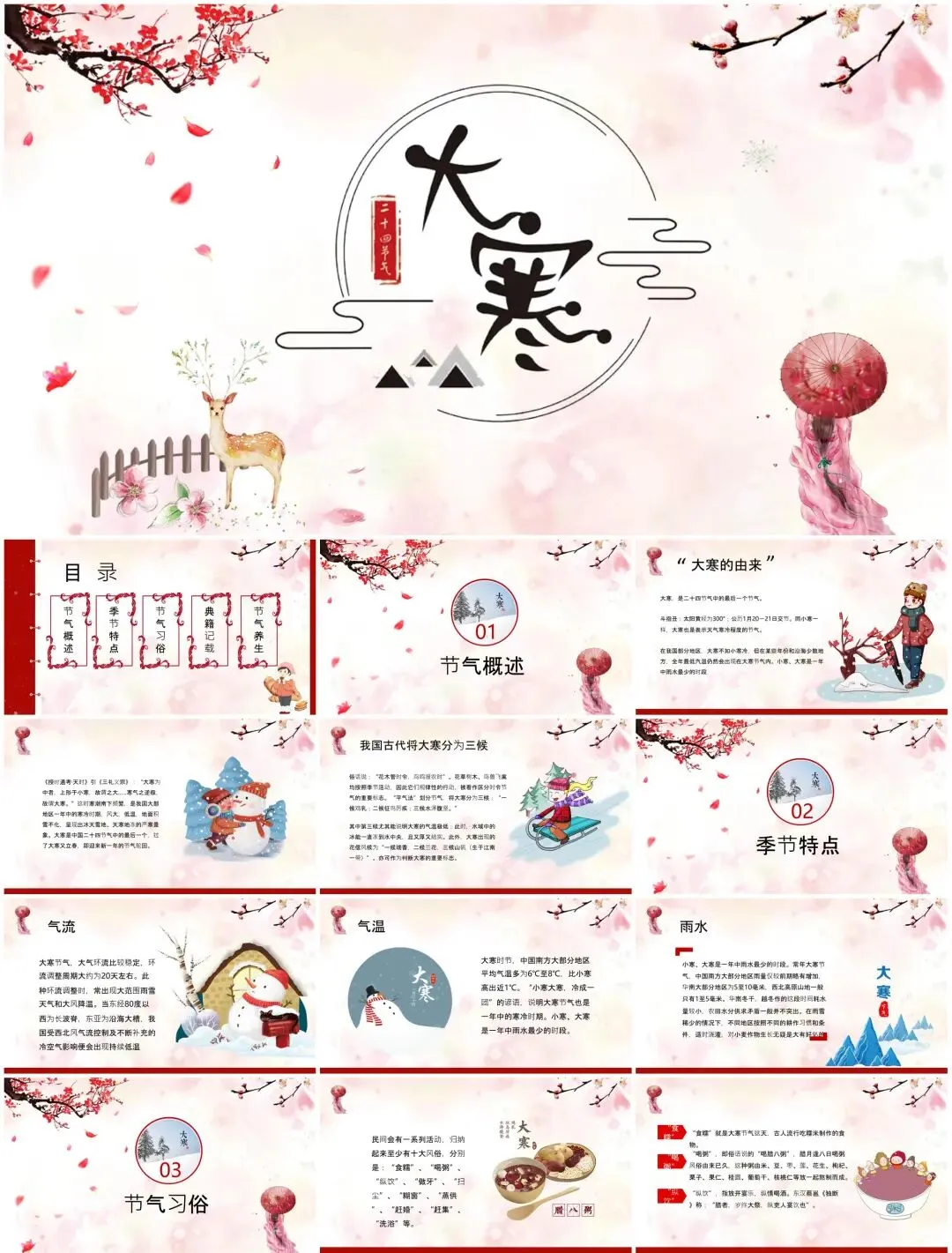 从"雪压松枝"动态封面到腊八民俗图解,从冬藏养生知识图谱到年货节数据看板——这套【节气专属PPT】融合故宫藏品元素与现代扁平化设计,用可编辑的冰雪粒子特效传递岁末温情。
