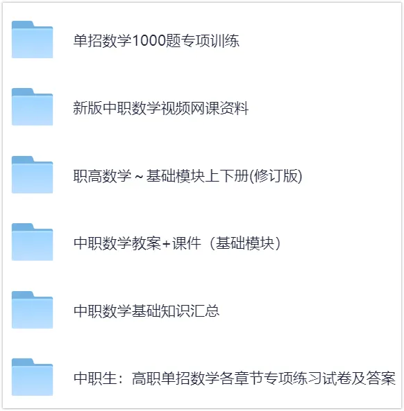 免费分享,中职数学视频网课+教案+课件PPT+基础知识汇总+单招数学1000题专项训练+单招题库+中职数学电子教材pdf配套电子资料