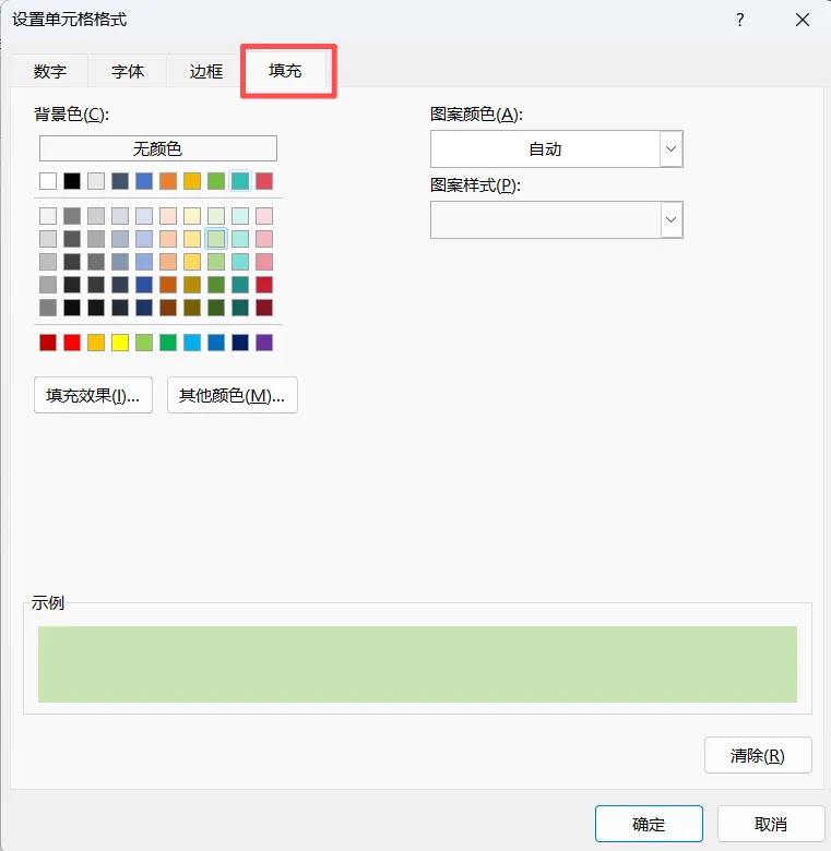 5.点击旁边的 【格式】 按钮。在弹出的窗口中,切换到 【填充】 选项卡,选择一个醒目的颜色,比如浅绿色,然后点击确定。如下图:
