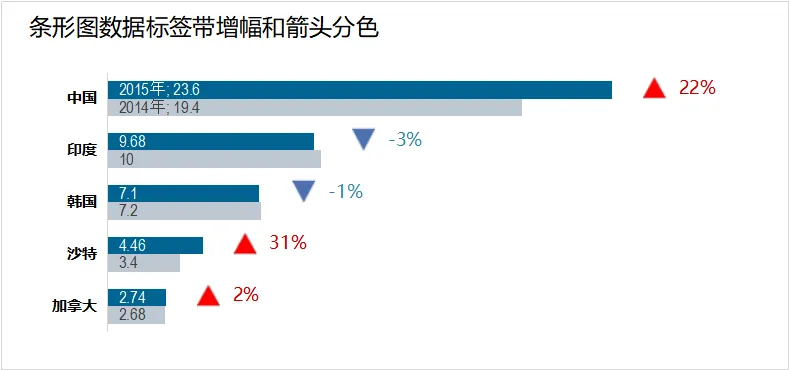 多项目对比二年数据时,需对增减幅度进行区分标示