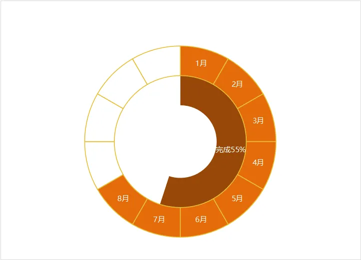 使用圆环图,将设置各数据点的填充色。