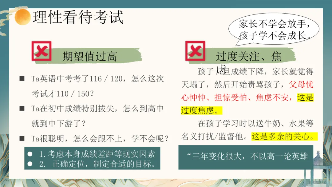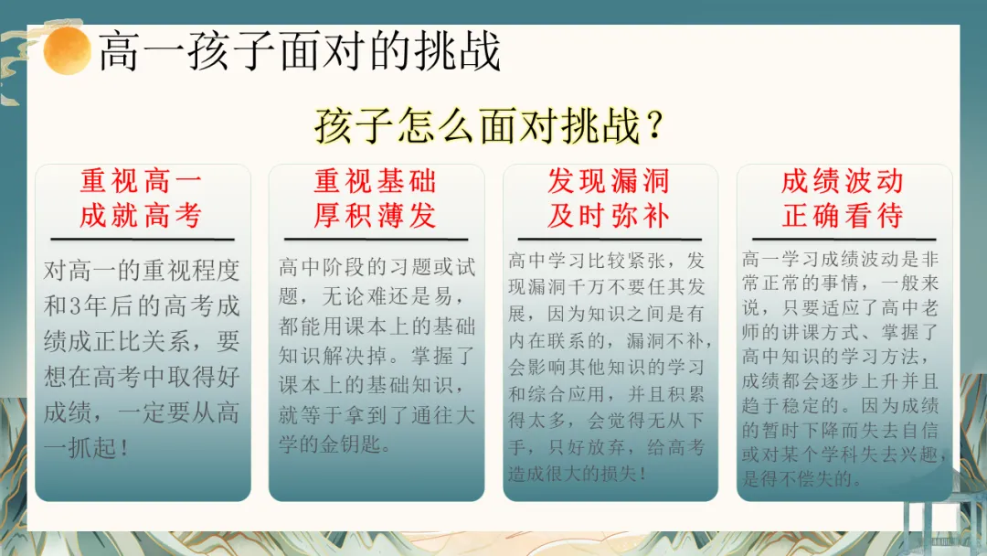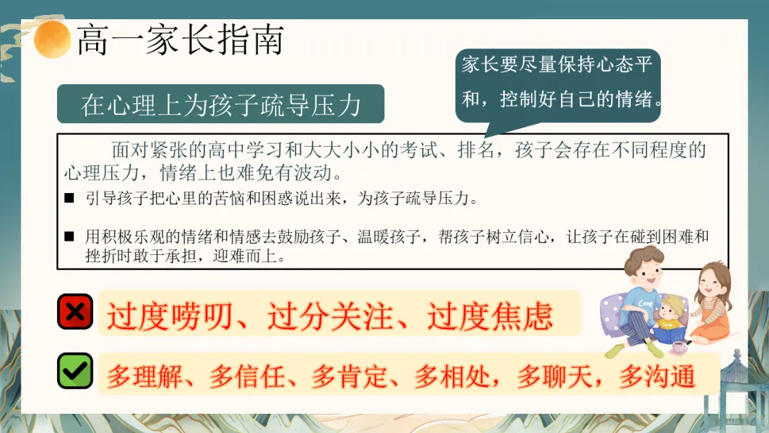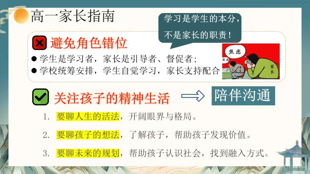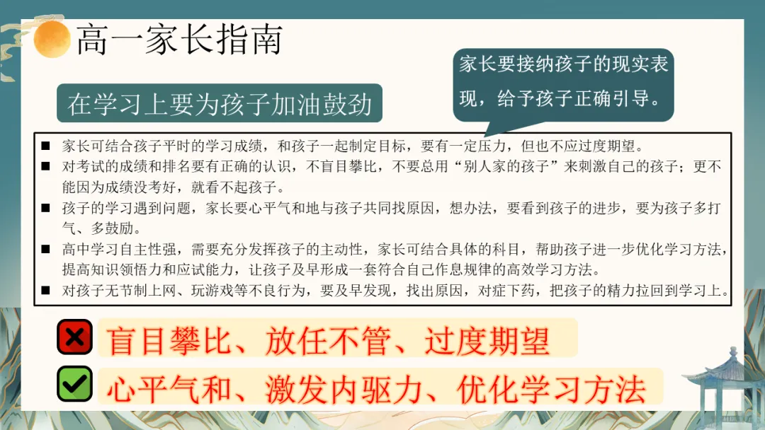 当然,站在高中的新起点,挑战与机遇并存。相比于初中,高中学习在知识容量、思维深度、节奏压力上都是质的飞跃。部分孩子可能会表现出暂时的不适应:比如目标模糊的迷茫、“假装努力”的自我安慰、面对薄弱学科的畏难情绪,或是网络世界的诱惑。这些,都是成长过程中的正常现象,也是我们此次需要共同关注并引导的课题。
