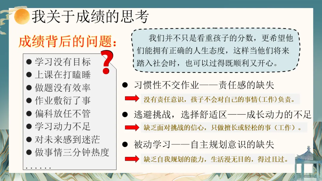 因此,今天我更想与各位家长交流的,不是某一次考试分数的高低,而是如何透过成绩,看到孩子习惯的养成、能力的积淀与心态的成长。教育的核心,在于唤醒内驱力,培养终身受益的品质:担当、抗挫、创新、协作、规划……这些,远比一时的排名更重要。