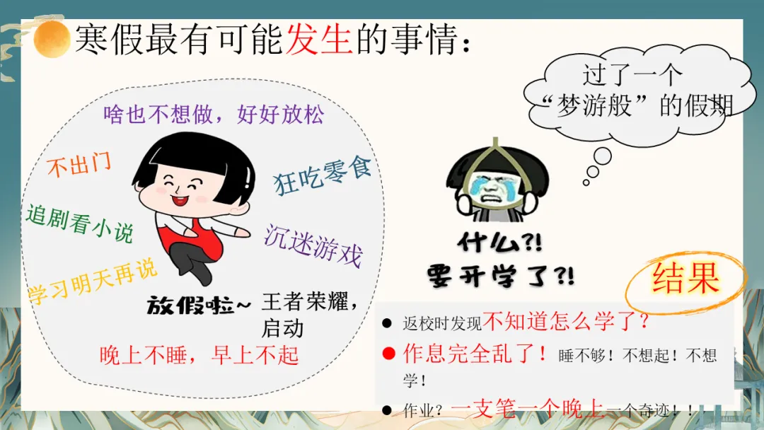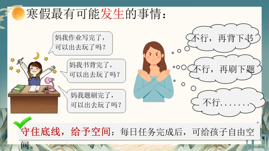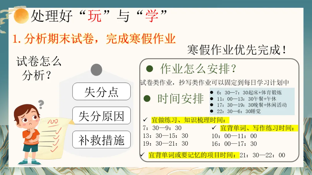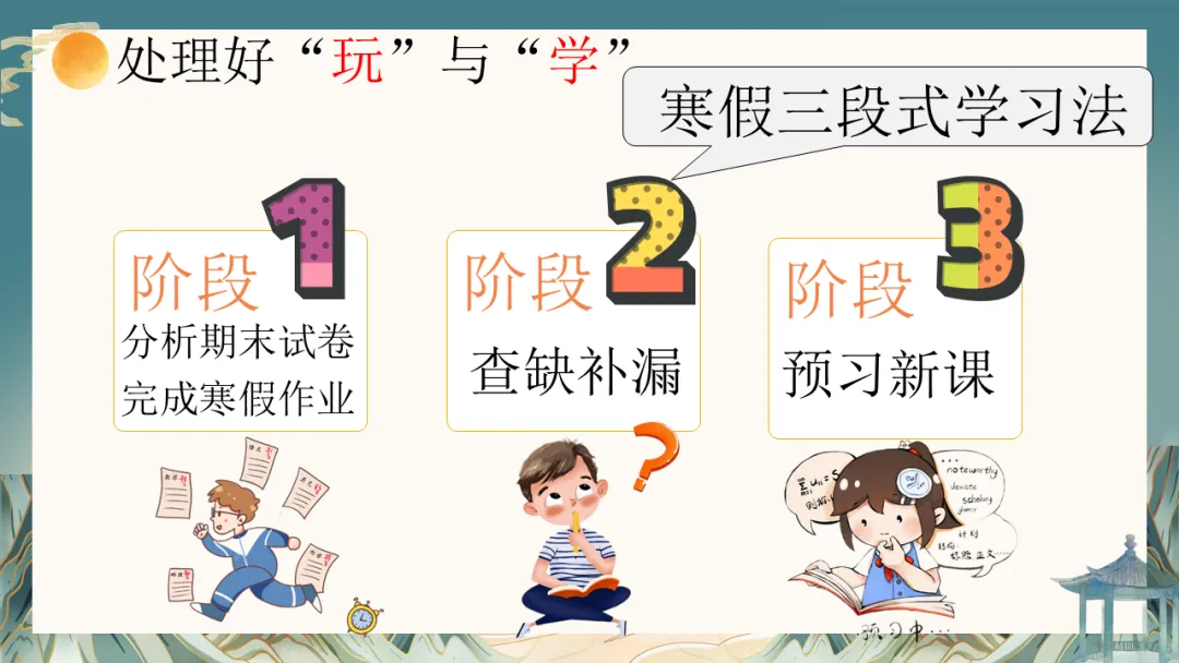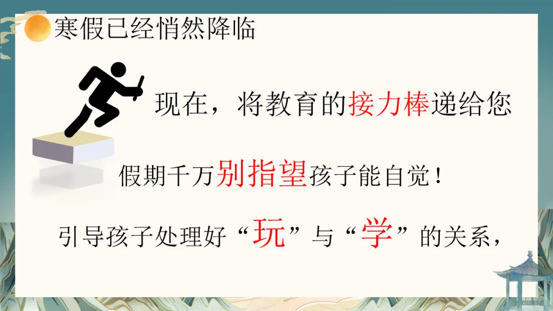 寒假将至,这是孩子休整、反思、充电的黄金期,也是考验家庭规划与亲子智慧的时期。我们建议:“守住底线,给予空间”。与孩子共同商定合理的作息与学习计划,保证基本的学习时间与任务,同时充分尊重他们的休闲意愿。更重要的是,利用这段相对完整的家庭时光,一起运动、阅读、聊聊天,增进理解,提升亲子关系的“温度”。各科老师也提供了具体的寒假学习建议,希望能帮助孩子有针对性地查漏补缺,平稳过渡。