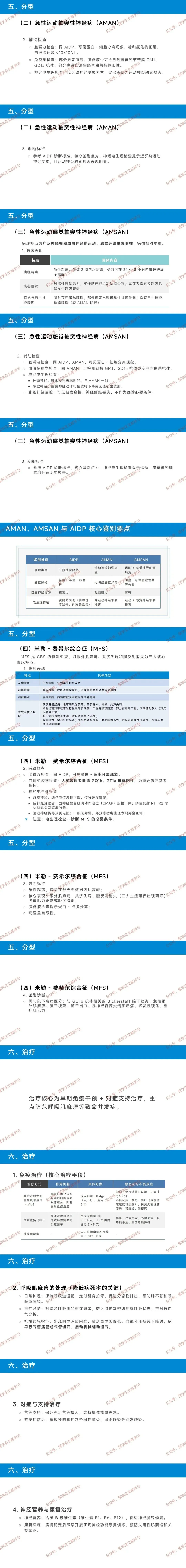 - 主要亚型:急性炎性脱髓鞘性多发性神经根神经病(AIDP,最常见)、急性运动轴突性神经病(AMAN)、急性运动感觉轴突性神经病(AMSAN)、米勒 - 费希尔综合征(MFS)等,亚型差异源于免疫攻击的神经靶位不同。