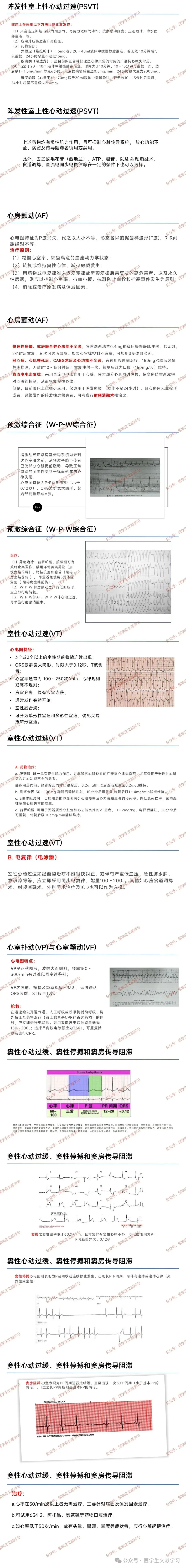 - 心律失常:窦性心动过速 / 过缓、阵发性室上速、房颤、室速、期前收缩等。