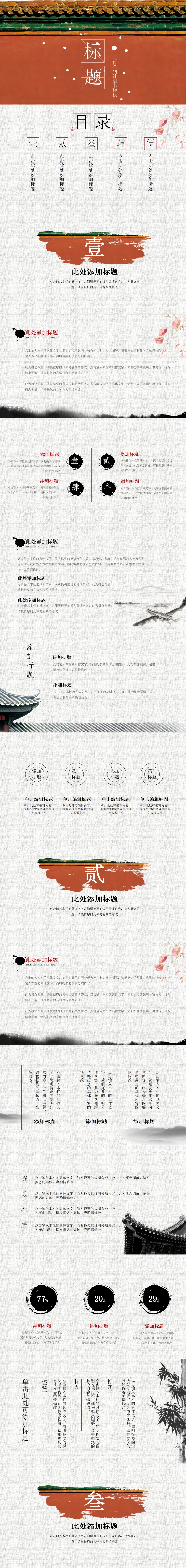 撷取千年国风之美,打造专属演示格调!多款国潮古风 PPT 模板,集颜值与实用为一体。从大气磅礴的故宫红墙配色,到清新雅致的水墨竹石插图,每一处设计都暗藏巧思。适用于非遗文化宣讲、古风主题班会、国潮产品发布会等多种场景。一键套用,即可让你的演示脱颖而出,尽显文化自信与审美品位。