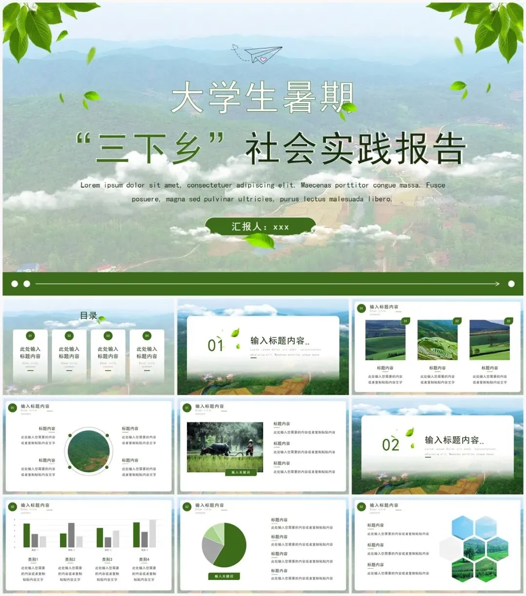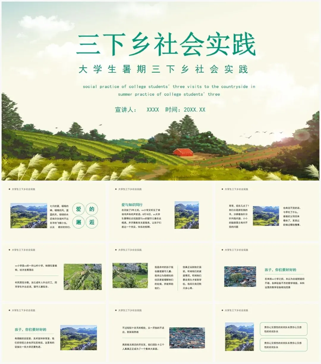[PPT类型]:15款大学生三下乡PPT模板[网盘分享链接]通过网盘分享的文件,复制链接打开百度网盘app即可获取:链接
