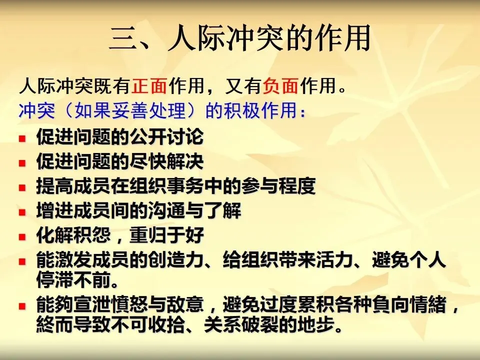 人际冲突既有正面作用,又有负面作用。