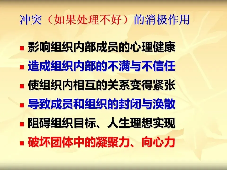 冲突(如果处理不好)的消极作用