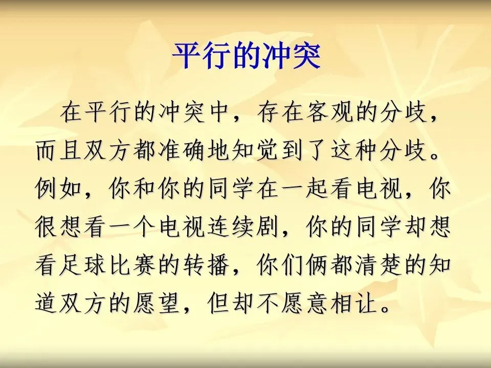 在平行的冲突中,存在客观的分歧,而且双方都准确地知觉到了这种分歧。
