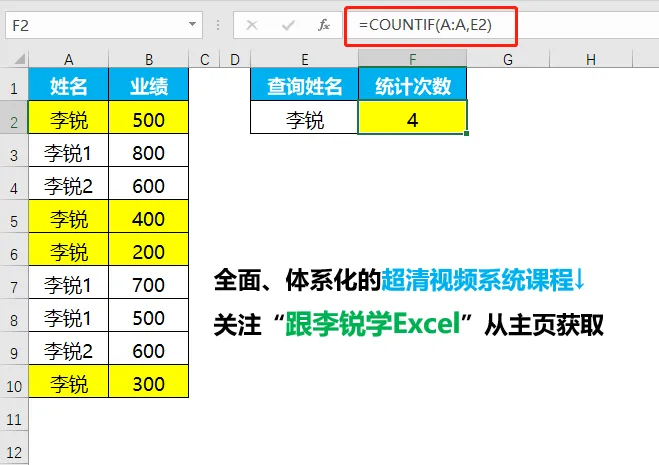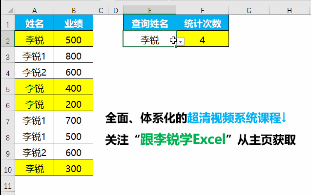要求统计查询姓名出现的次数,如下动图所示。