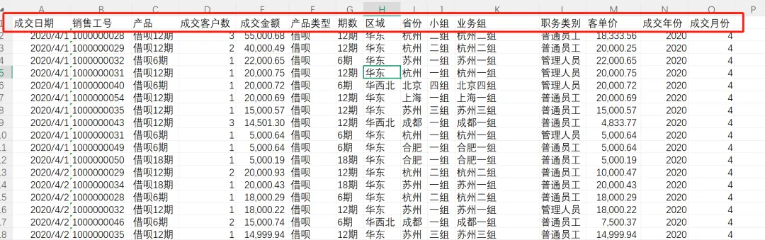 目标是清洗成和之前5月的报表一样的数据,包含下面这些数据列并一一对应(统一口径)