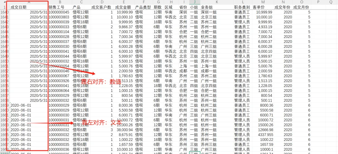 Q:6月的“成交日期”列没有被识别为日期怎么处理?