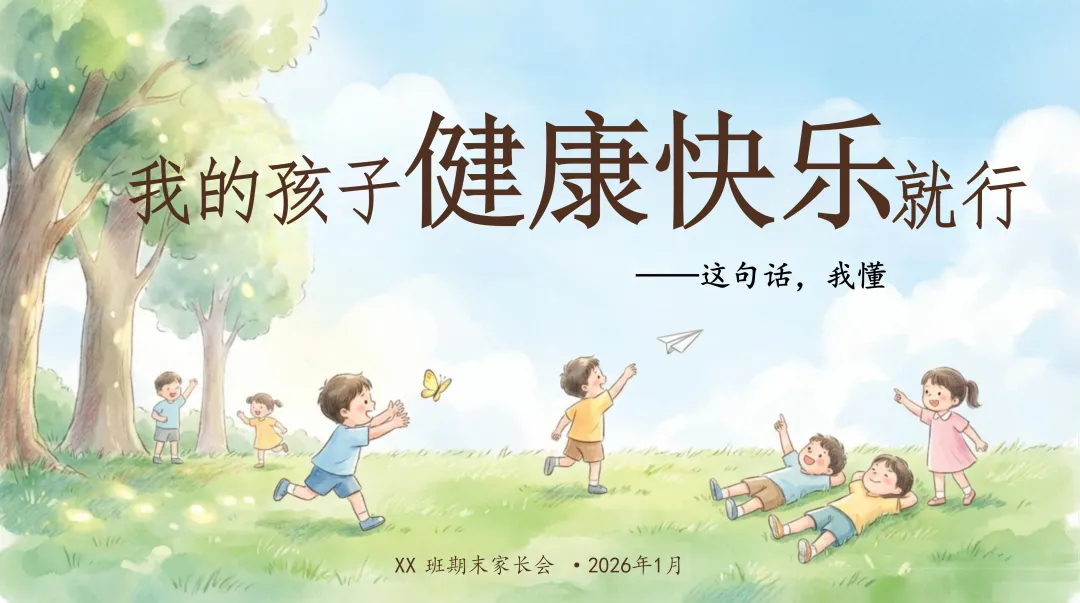 很高兴在这与您相遇,如果您是一位班主任老师,每天除了应对繁重的教学工作,还要加班整理班级、教务、教研、课件PPT资料,请关注下方的“小木教务资料”,让我们风雨同路、一起成长~今天分享的是中小学期末家长会的ppt课件和配套的发言稿,主题是《孩子在学校的底气,我的孩子健康快乐就行》。《我的孩子健康快乐就行》