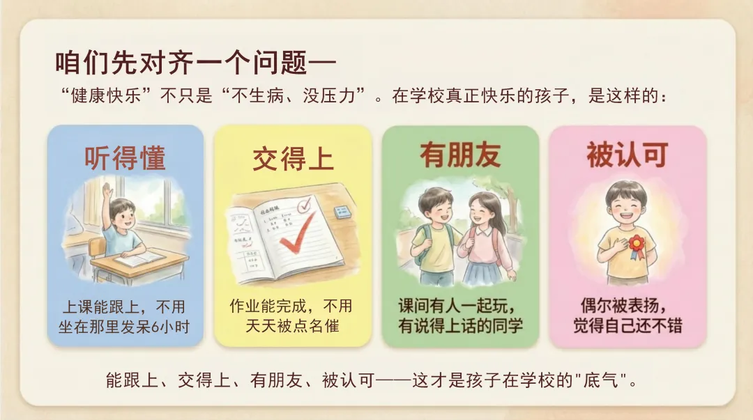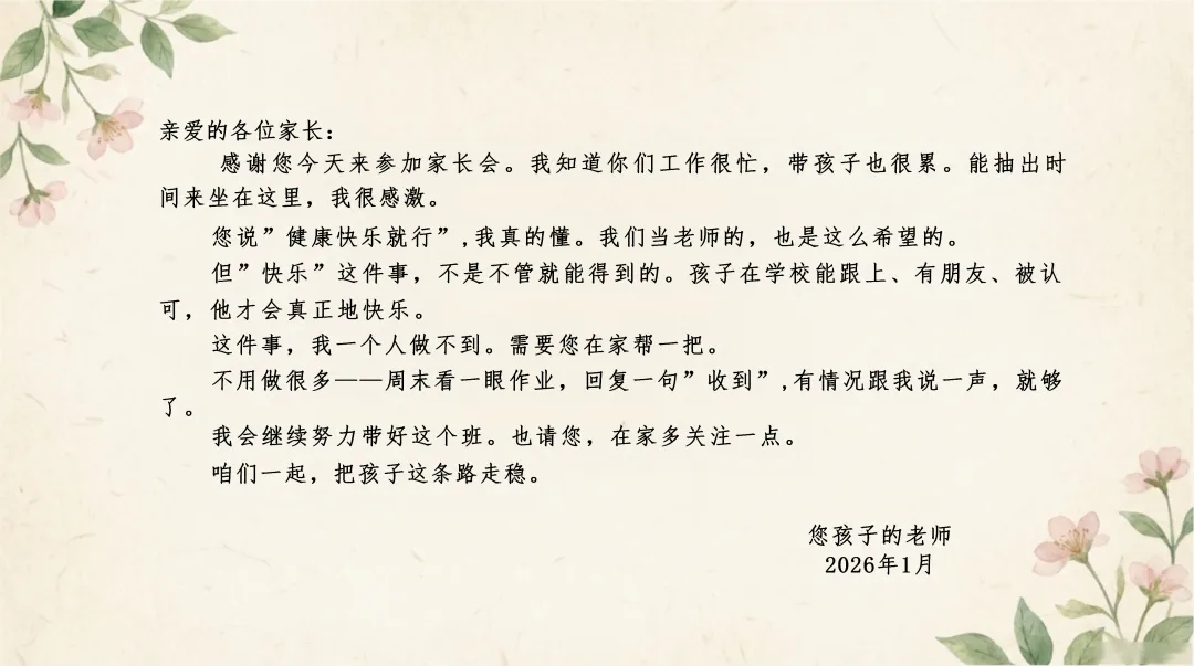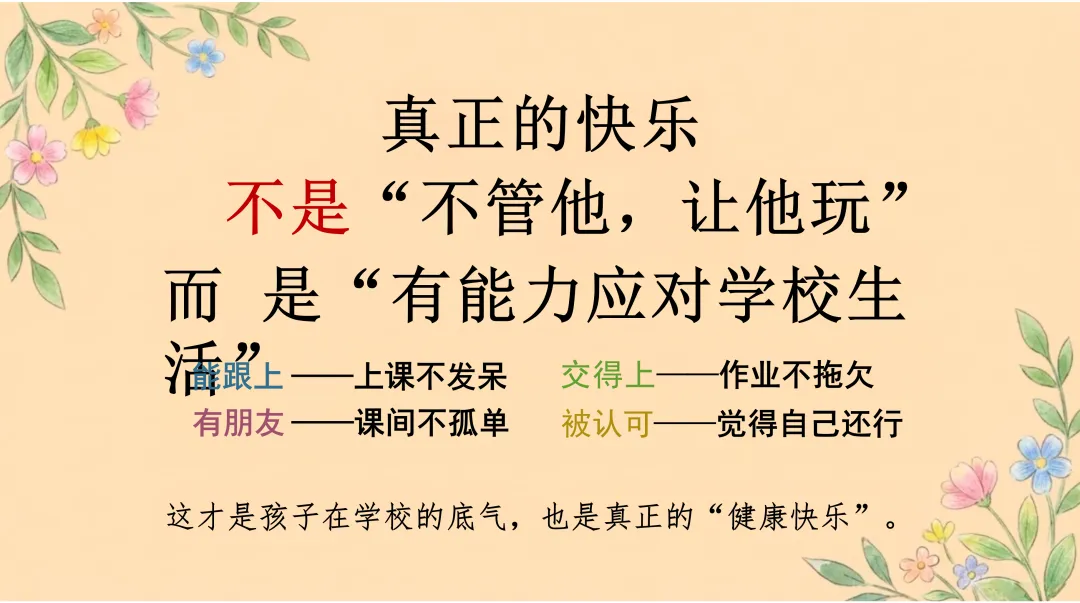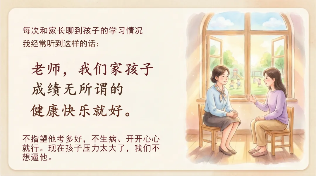 今天这个家长会,我想和大家聊一个话题——就是我们经常说的那句话:「我的孩子健康快乐就行」。