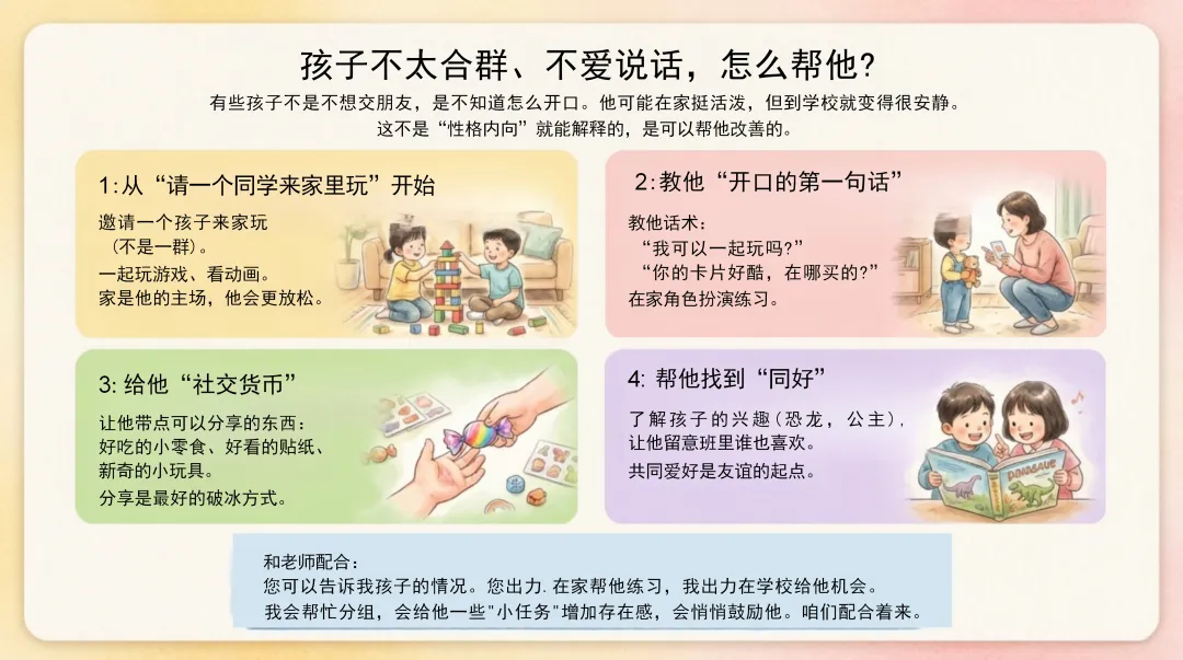 ·没朋友:课间别人都凑一起,他一个人坐着。他假装在看书,其实很难受