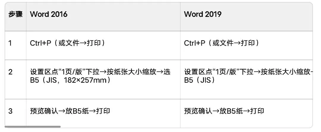将A4 Word文档打印到B5纸上,优先用“打印时缩放”,避免改原文档;若需长期用B5,再改页面设置。