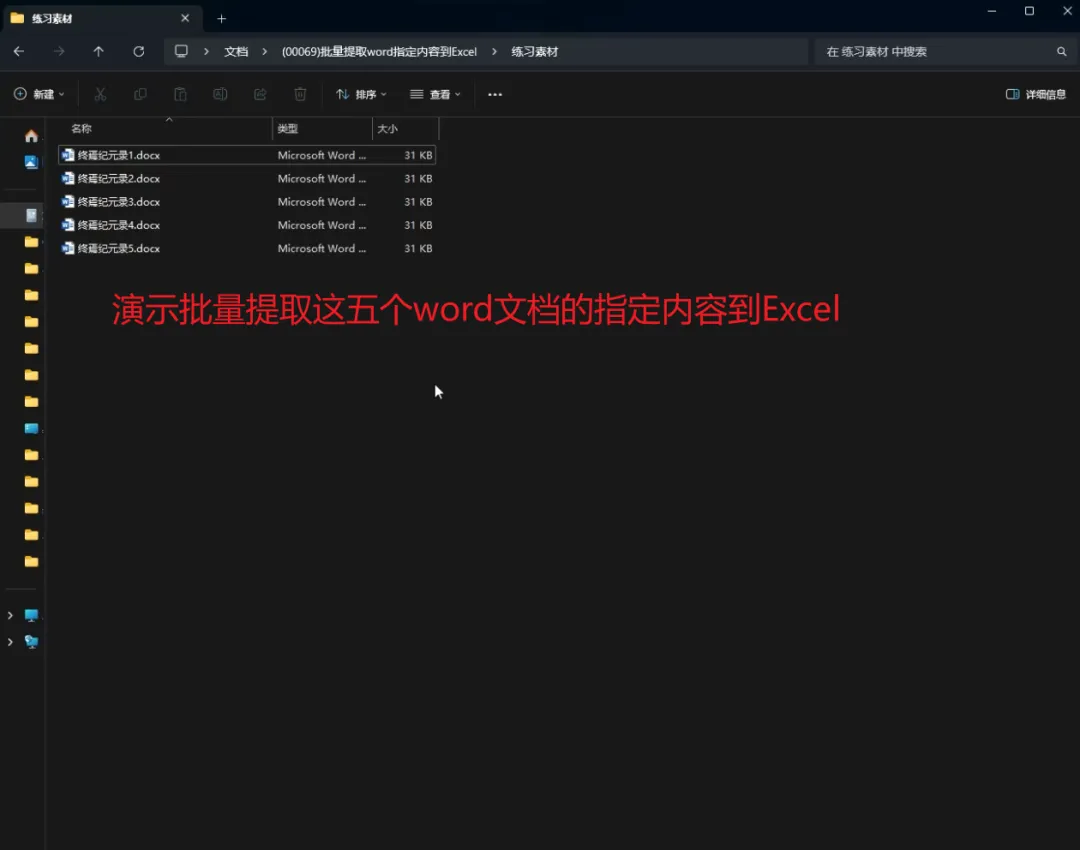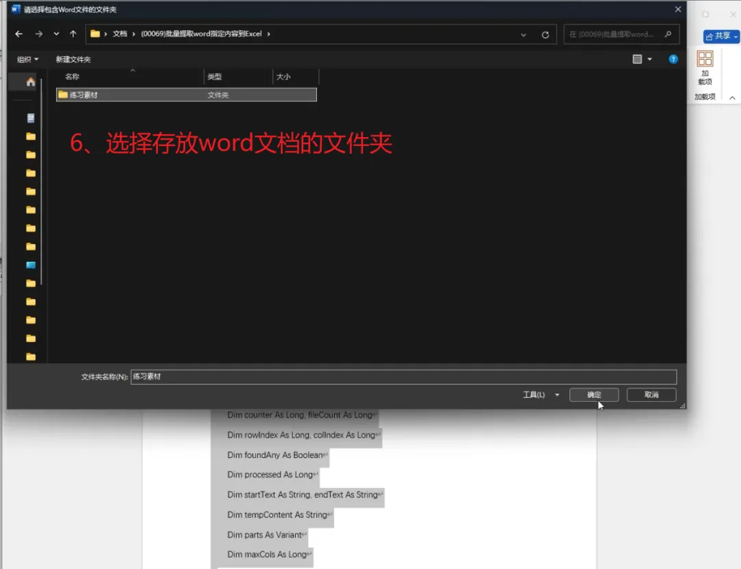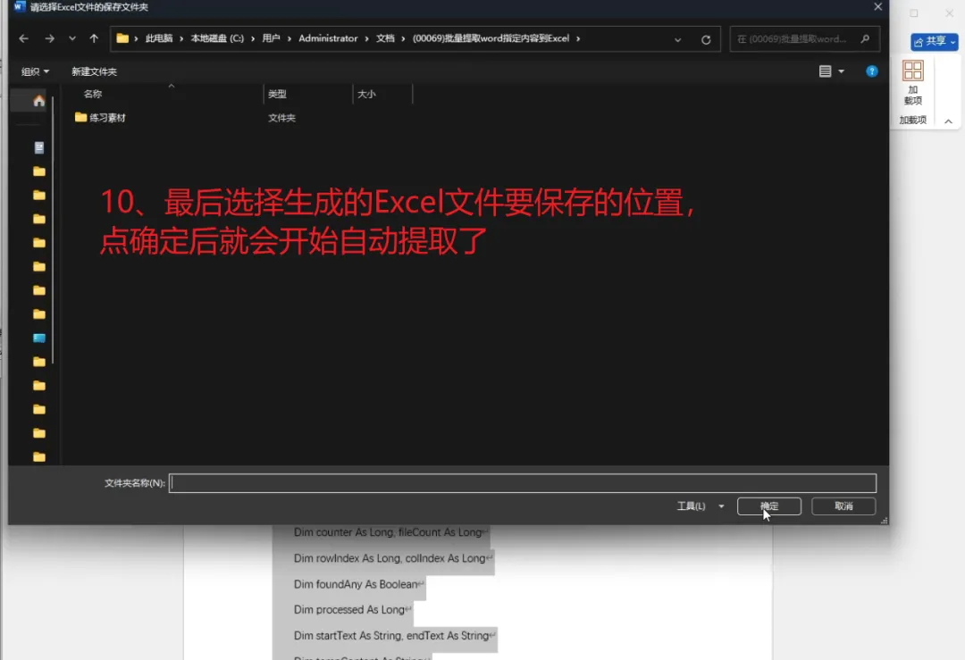 选择 需要提取内容的 Word 文件所在的文件夹