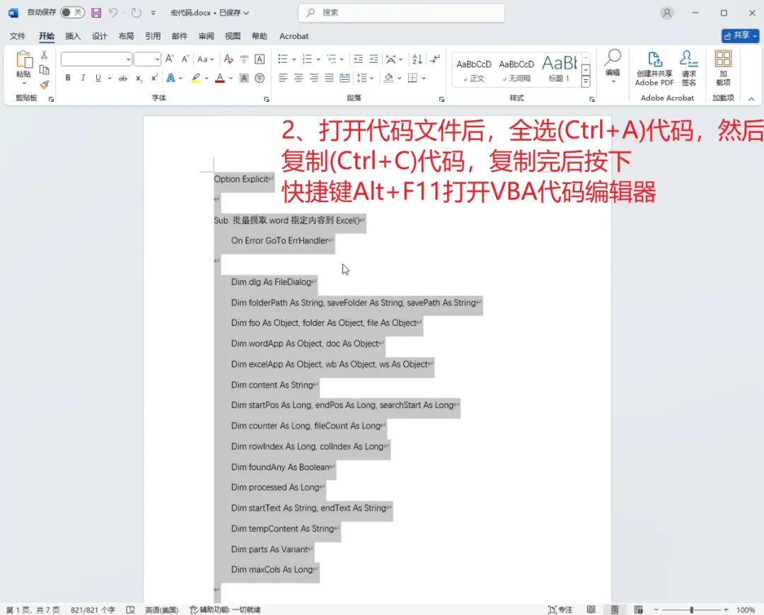 2️⃣ 打开一个空白 Word,按 Alt + F11 打开 VBA 编辑器
