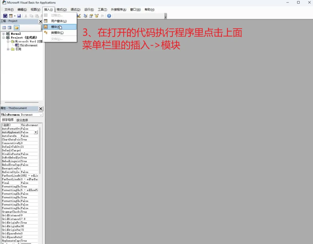 3️⃣ 菜单栏点击:插入 → 模块