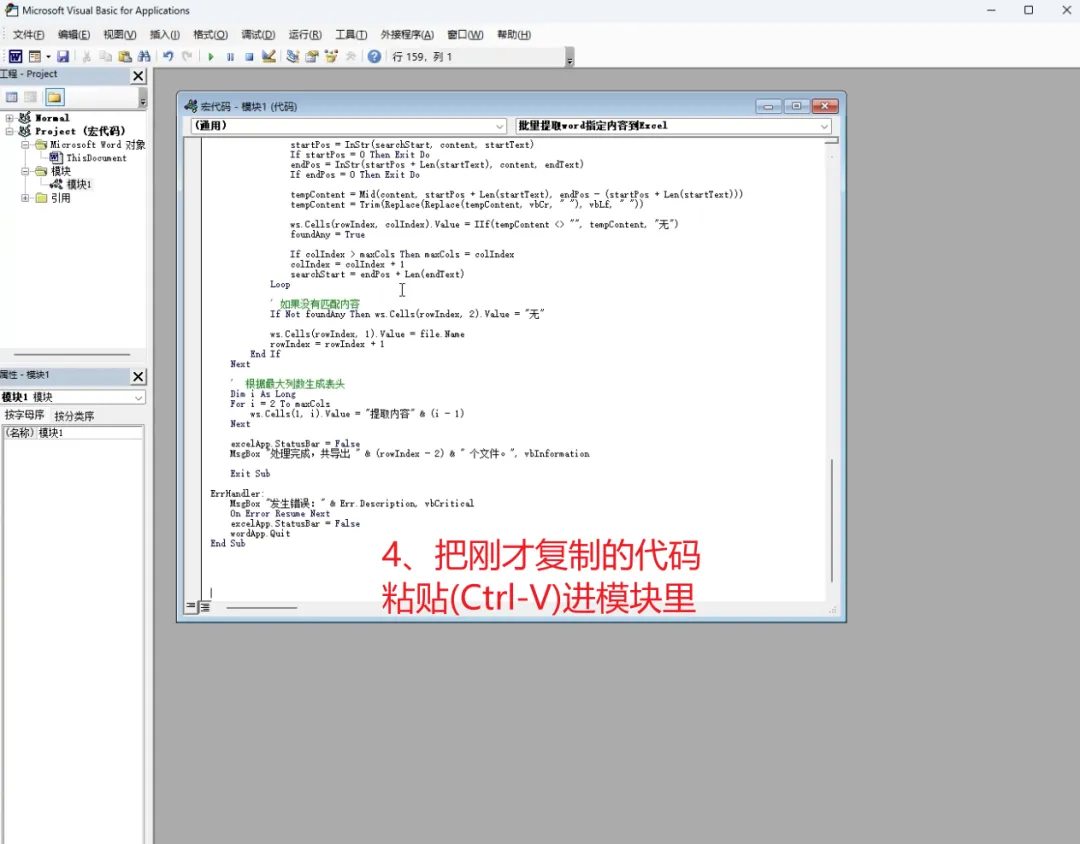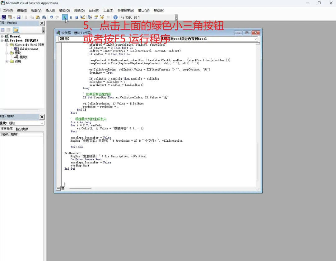 4️⃣ 粘贴代码后,按 F5 运行宏