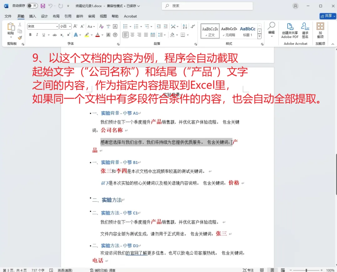 ✔ 支持单个 Word 中多段内容提取