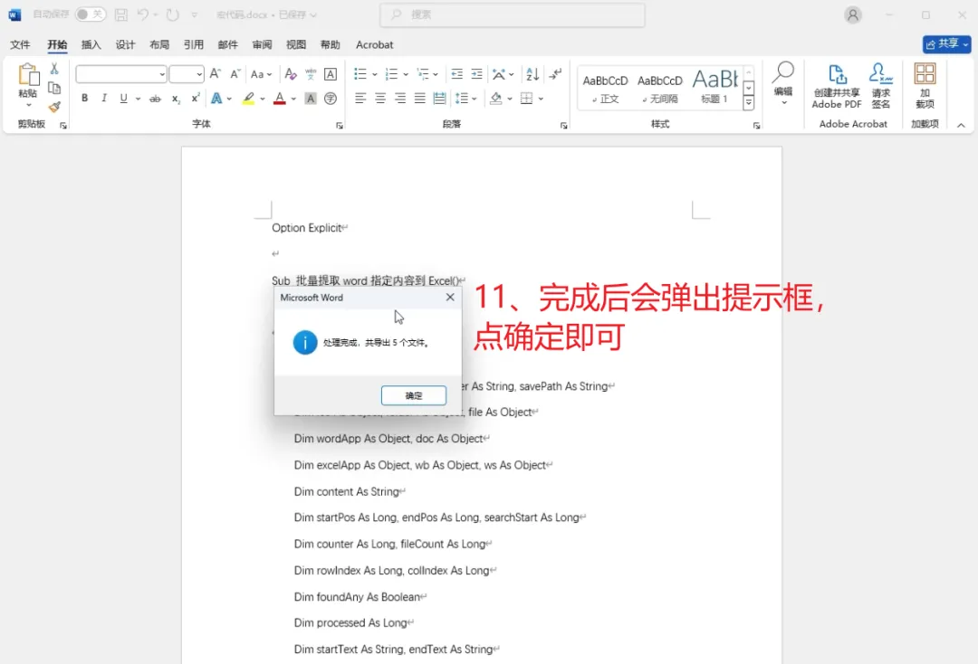 现在,只需要 一套 VBA 宏工具,就可以 批量提取 Word 中指定起始文字到结尾文字之间的内容,并自动生成结构清晰的 Excel 汇总表,全程自动完成。