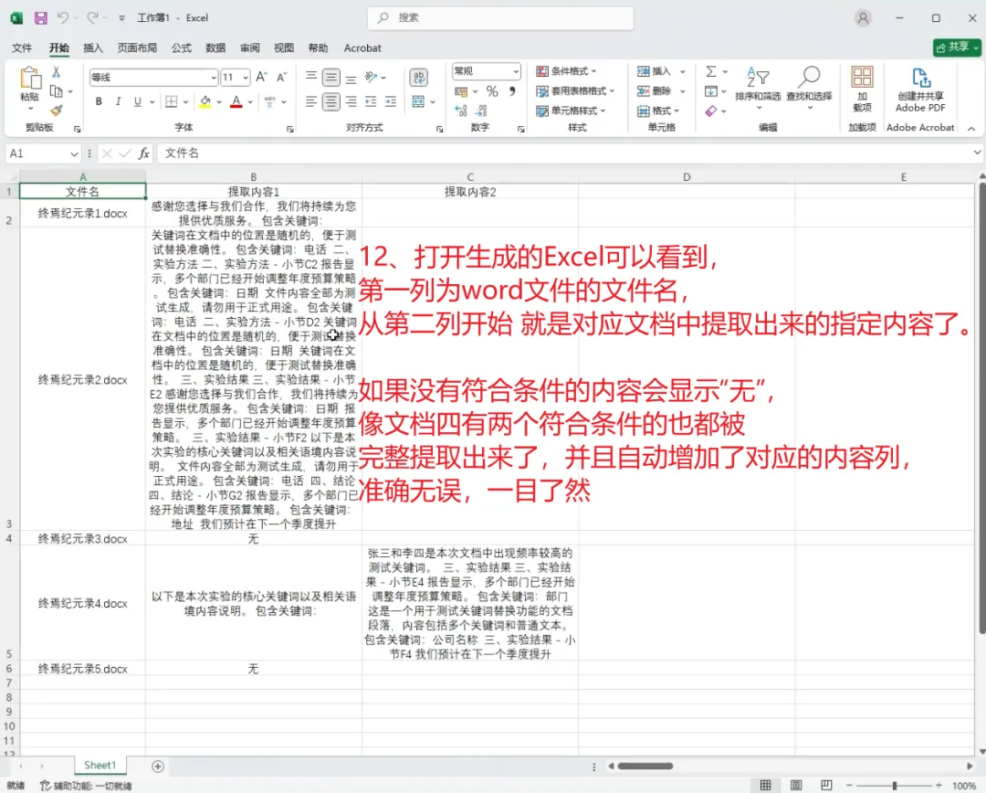 每个 Word 实际提取到多少段内容,就自动生成多少列。