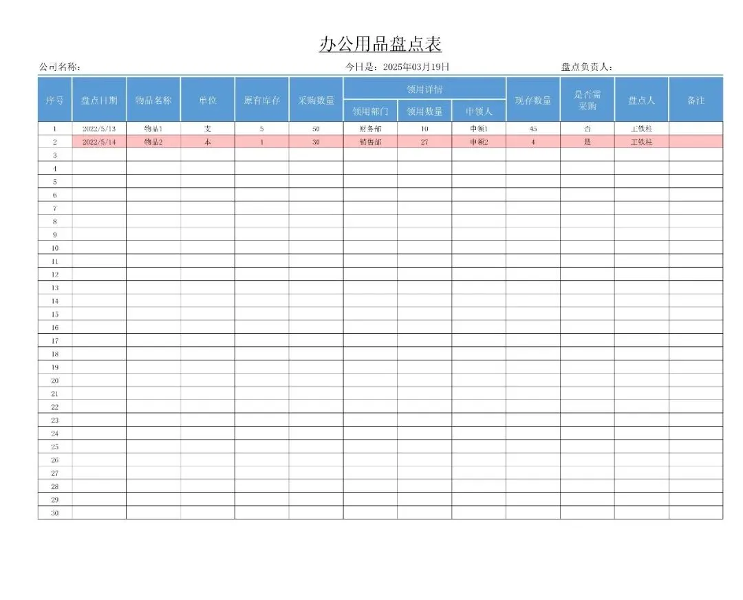 >4款办公用品盘点表模板,WORD文档电子版,可免费下载打印