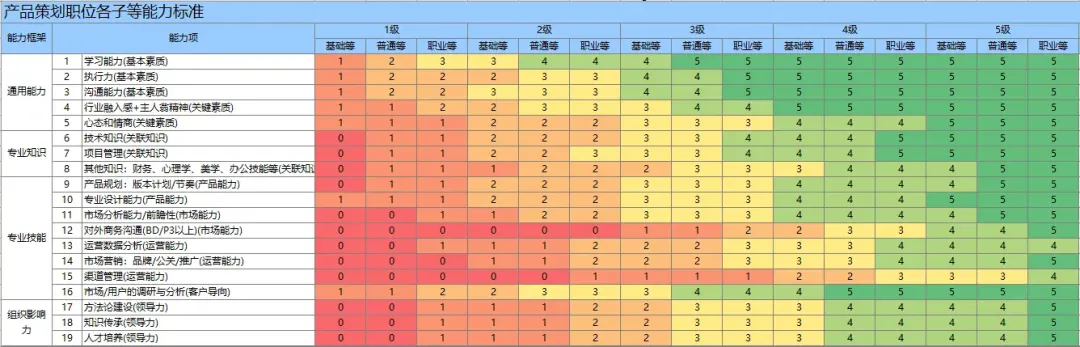 以腾讯的产品岗为例,就有“腾讯产品经理能力模型”,每个阶段需要什么能力、要达到什么要求,都会明明白白列出来。