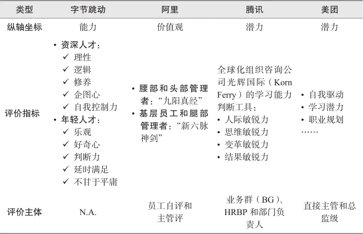 BATM四巨头人才九宫格模型纵轴的考核对比