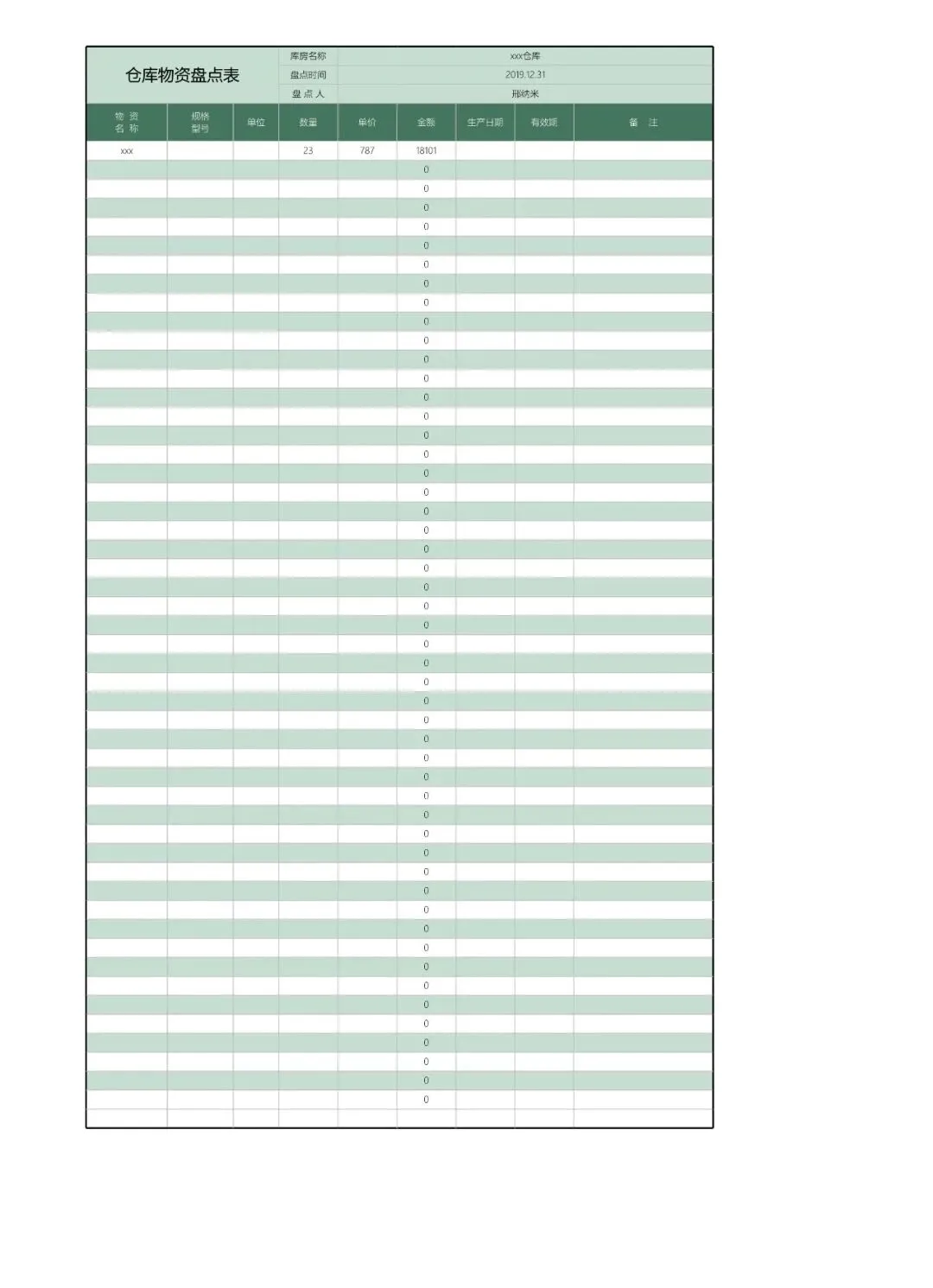 59套库存盘点明细表模板excel电子版