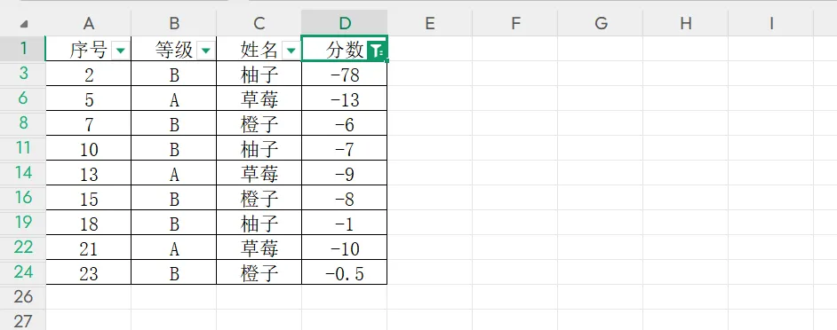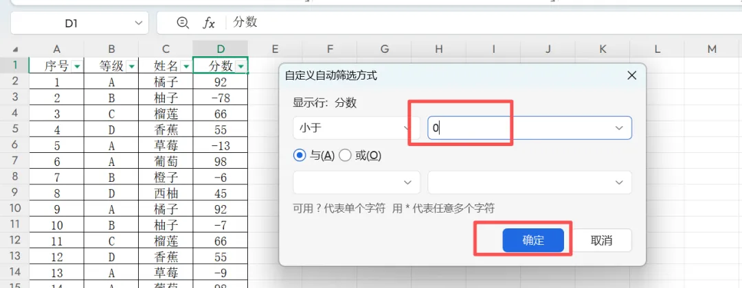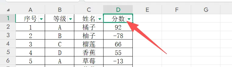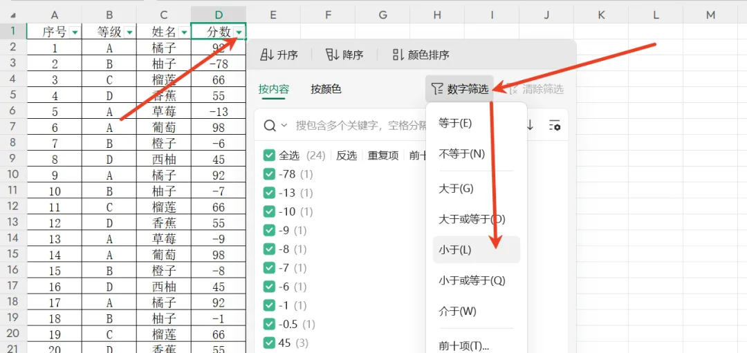 2、点击分数右下角的筛选按钮,按数字筛选---小于