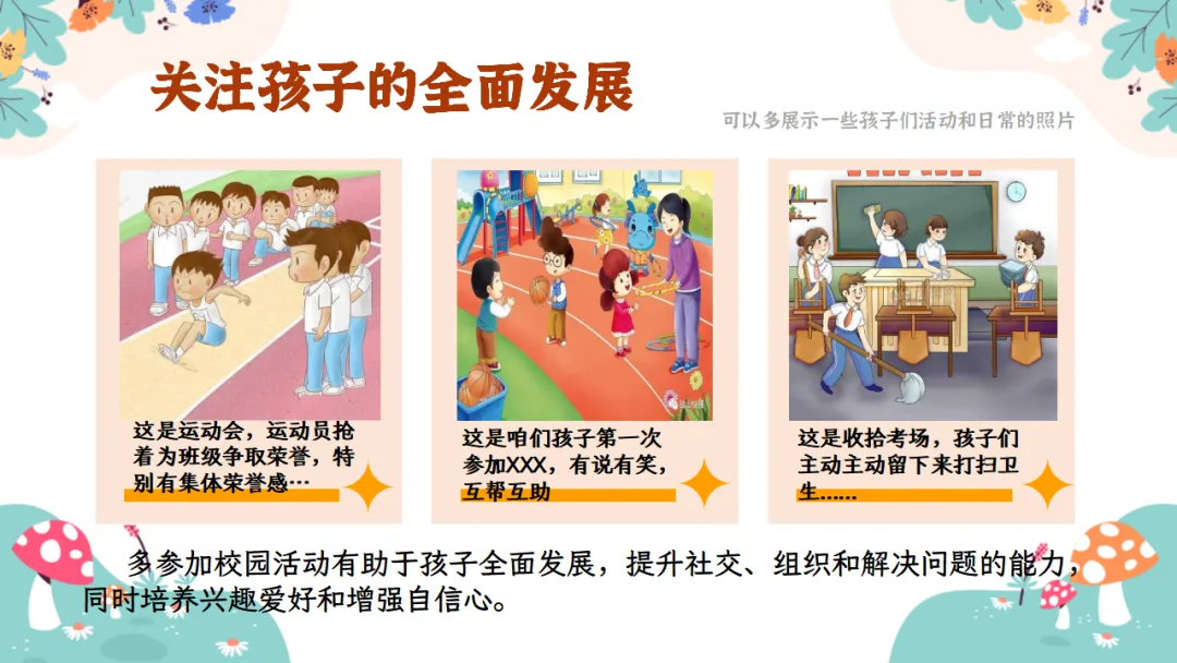 可以多展示一些孩子们活动和日常的照片
