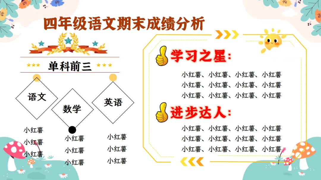 单科前三:可据实说明;学习之星:可据实说明;进步达人:可据实说明