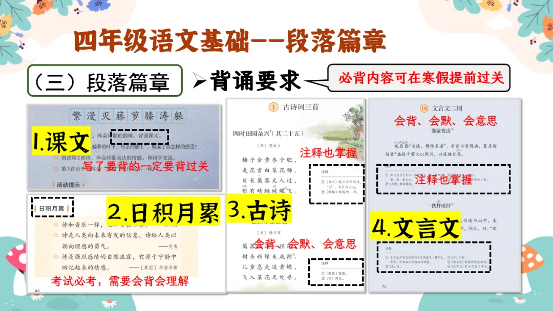 背诵要求:必背内容可在寒假提前过关