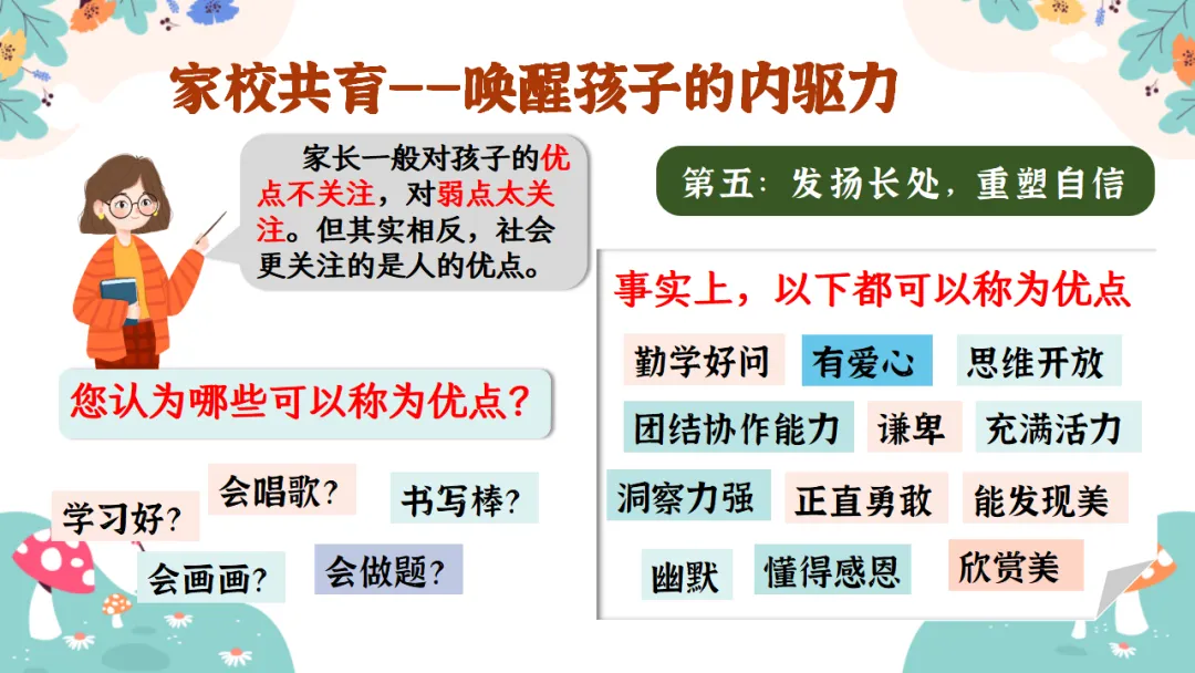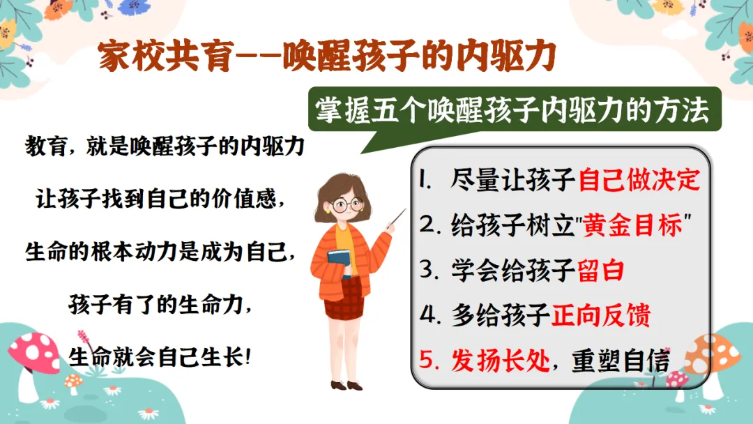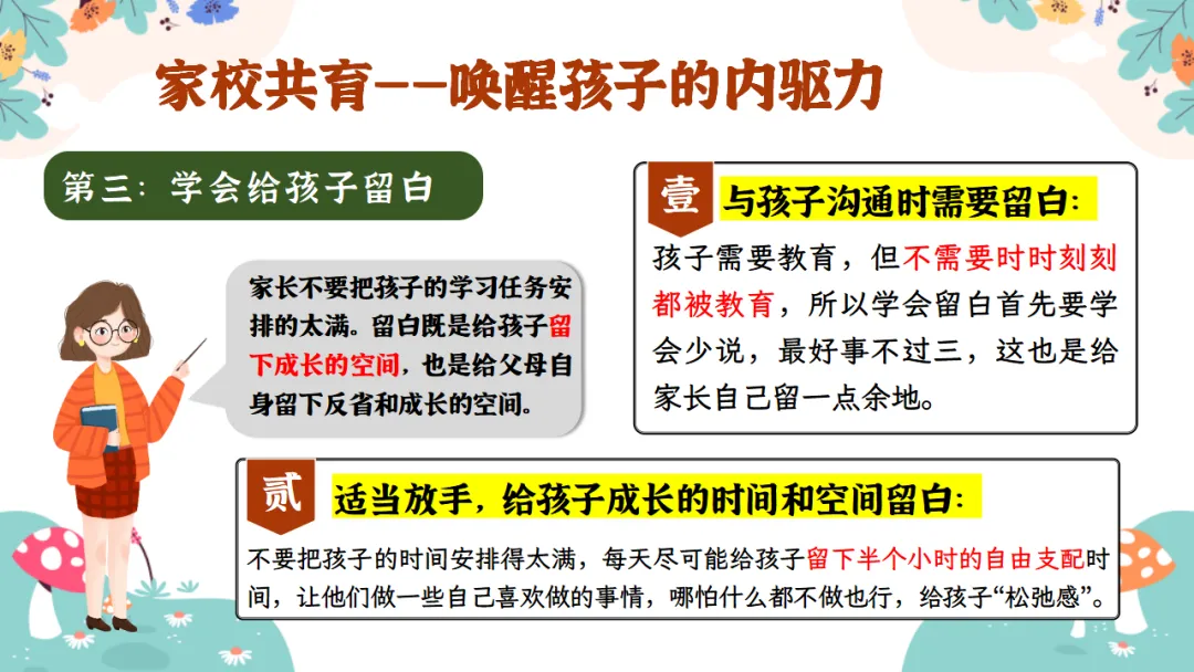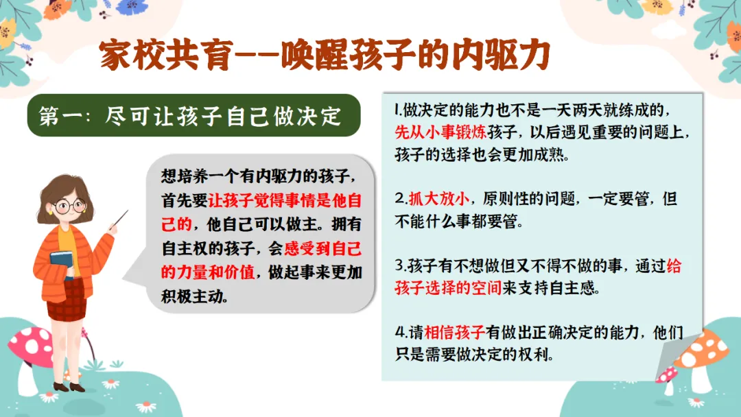 2.培养孩子的各种能力:独立思考的能力、解决问题的能力、时间管理的能力、生活自理的能力......