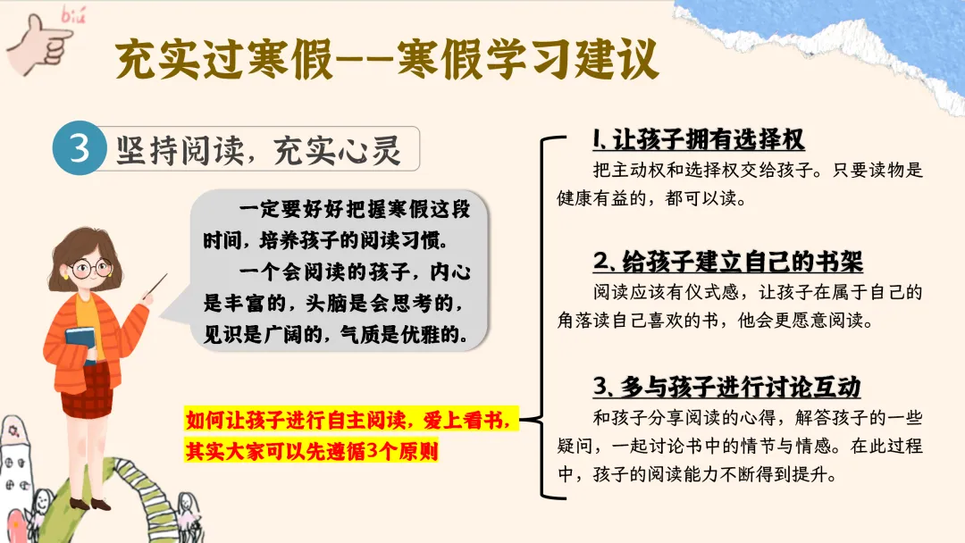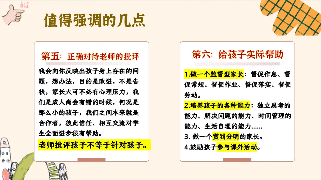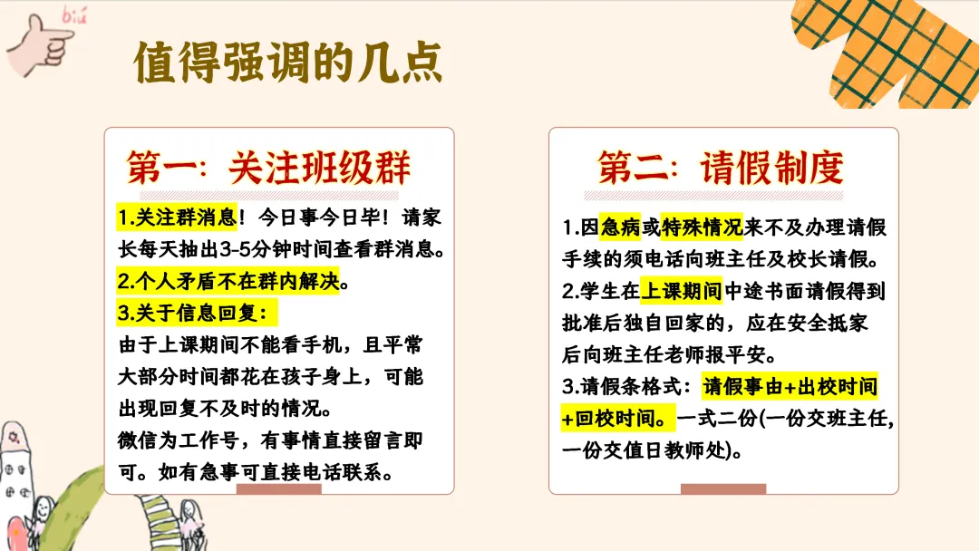 此次家长会,是家校携手的又一次心灵交汇。内容主要分有4大部分:01温馨话家常 成长你我他;02学习有方法 紧抓重难点;03洞悉新趋势 合力促成长;04充实过寒假 安全不放假。